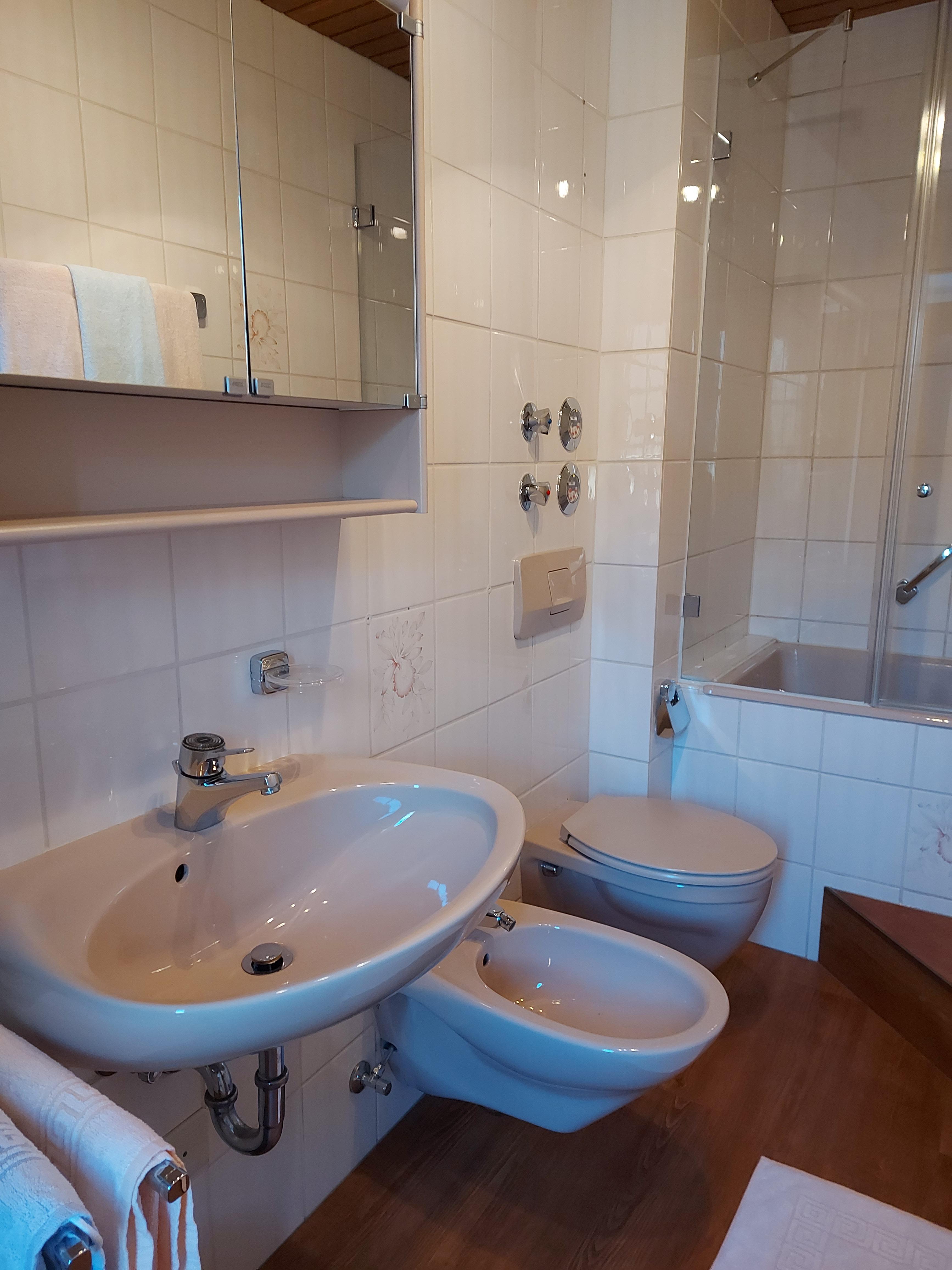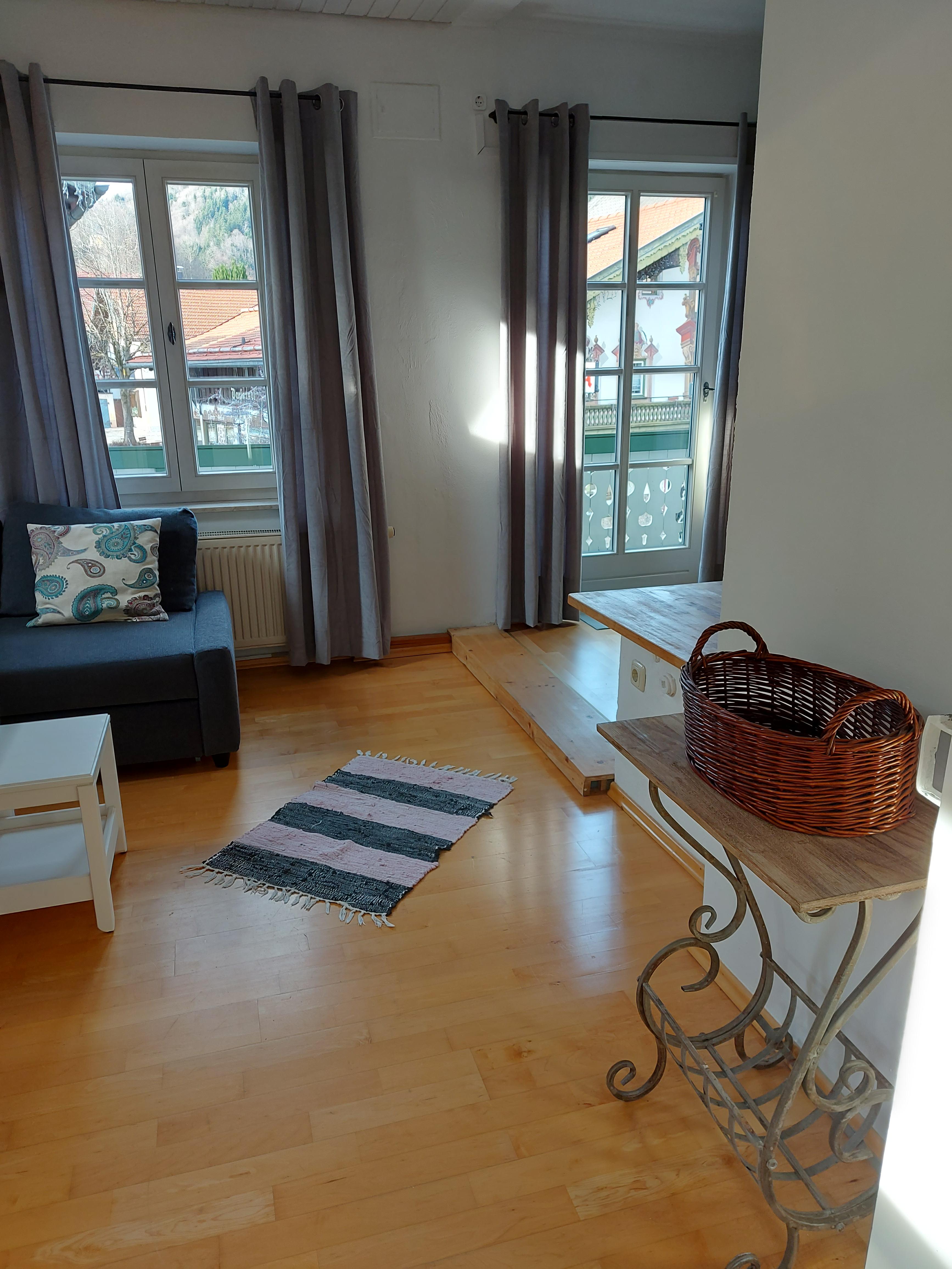 Die geräumige Wohnung Rauschberg besteht aus 4 Zimmern, sowie Duschbad mit WC. Der Mittelpunkt ist die große Wohnküche mit Essecke, Einbauküche und Zugang zum kleinen Südbalkon, der zu jeder Jahreszeit zum Sonnenbaden einlädt. Zur Ostseite schließt sich eines der beiden Schlafzimmer mit Doppelbett, Schrank ect. und Zugang zum Badezimmer an. Nach Westen hin kommt man von der Essküche ins Wohnzimmer mit Couchecke und Fernseher und Zugang zum großen Westbalkon sowie Diele und weiteres Schlafzimmer mit Doppelbett. Vom Westbalkon aus kann man das Leben im Dorf beobachten (auch Prozessionen und traditionelle Umzüge wie der jährliche Georgiritt) und die schöne Aussicht auf die sehenswerte Ruhpoldinger St. Georgskirche genießen.