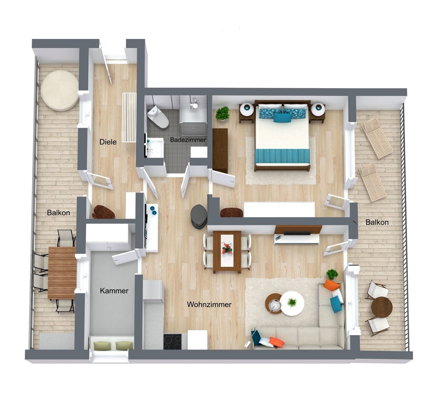 2 große Balkone davon einer mit Chillout Bereich