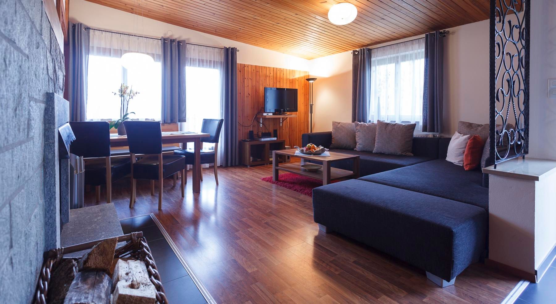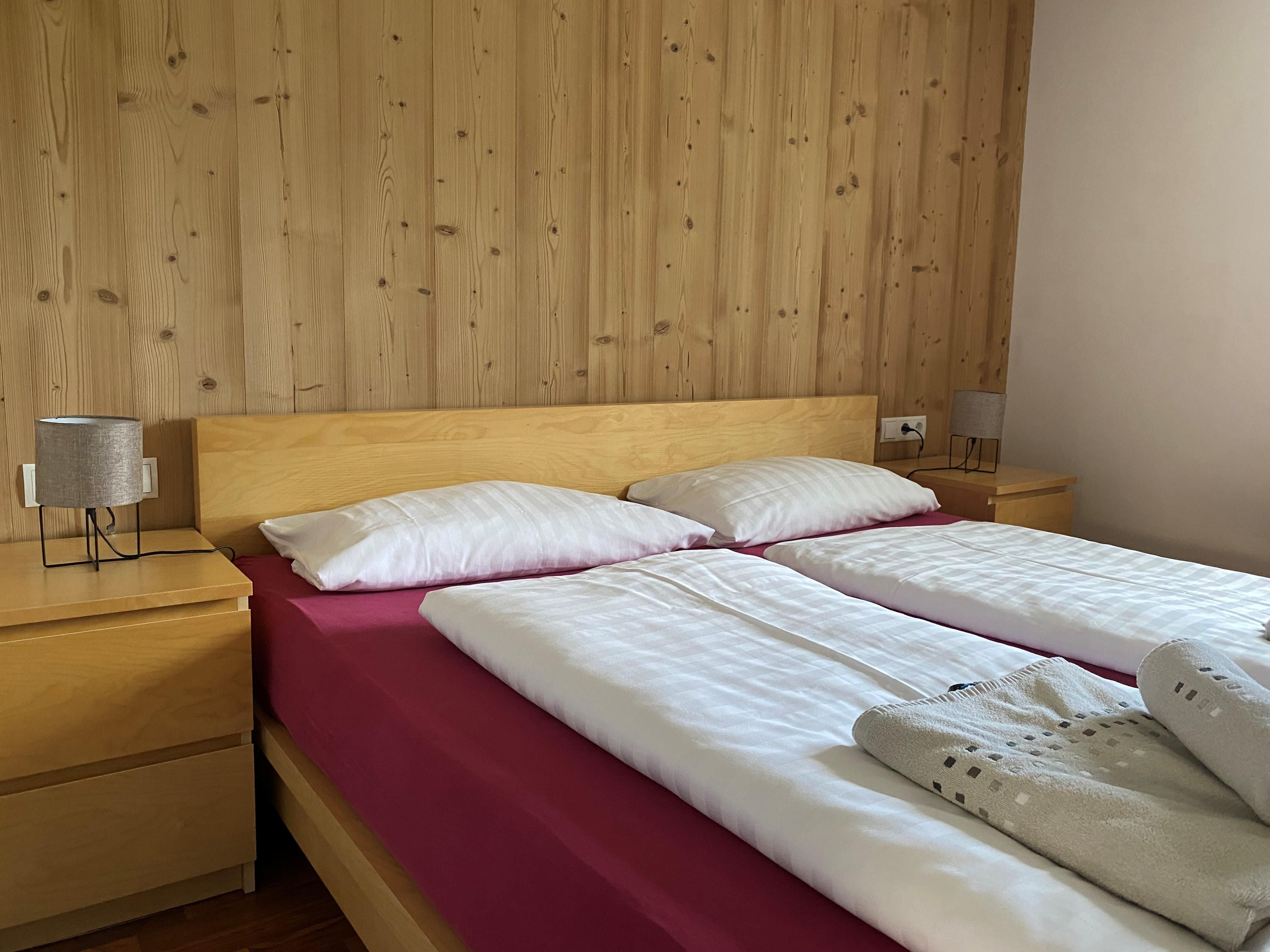 Wohnung Zimba für 10 Personen (+3 Zustellbetten möglich): 5 Doppelzimmer (+3 Zustellbetten) 2 Badezimmer mit Dusche,WC und Waschtisch 1 Badezimmer mit Dusche und Waschtisch 1 separates WC 1 Großes sehr gemütliches Wohnzimmer mit offenem Kamin 1 Küche 1 Große überdachte Lobby mit Gartenmöbel
