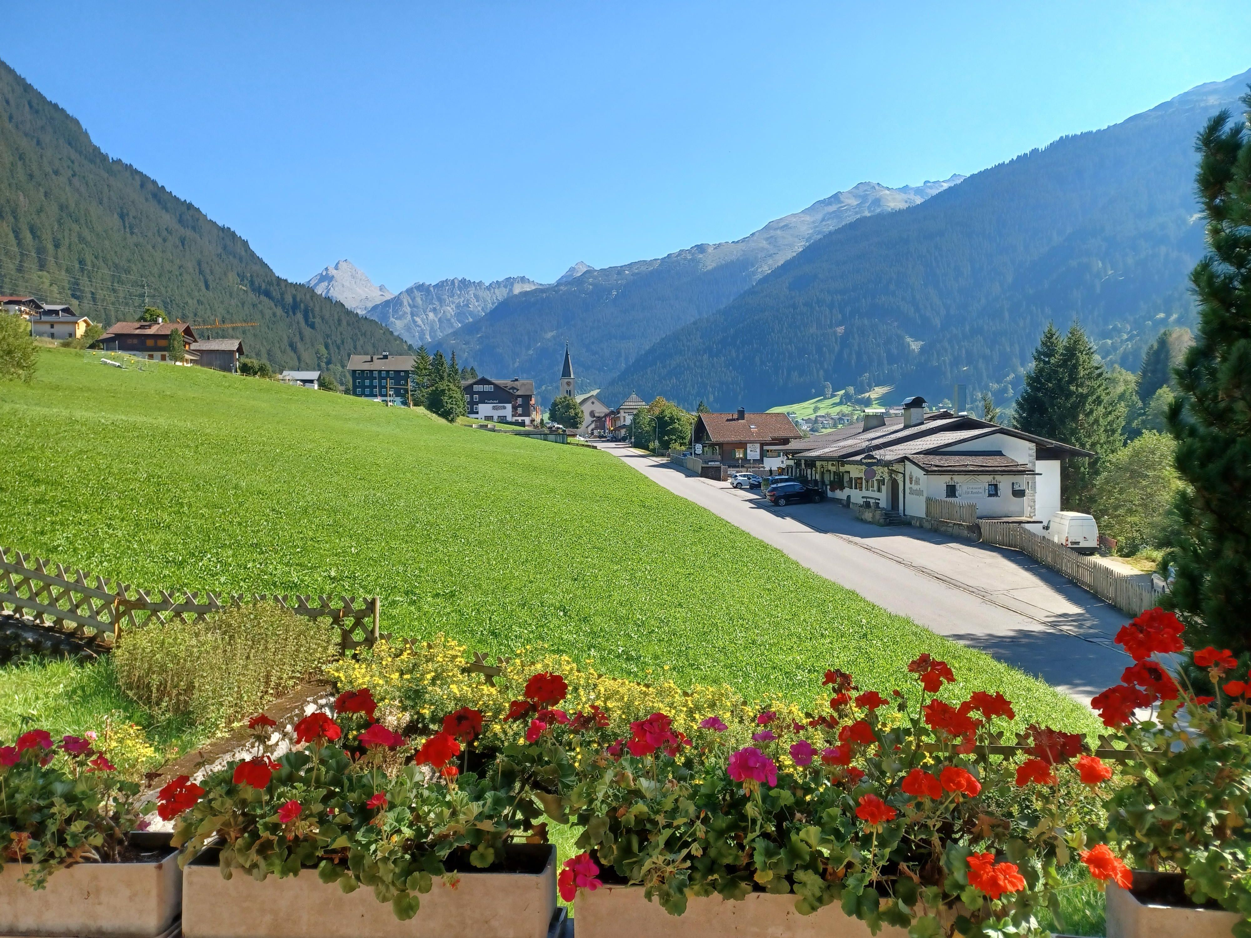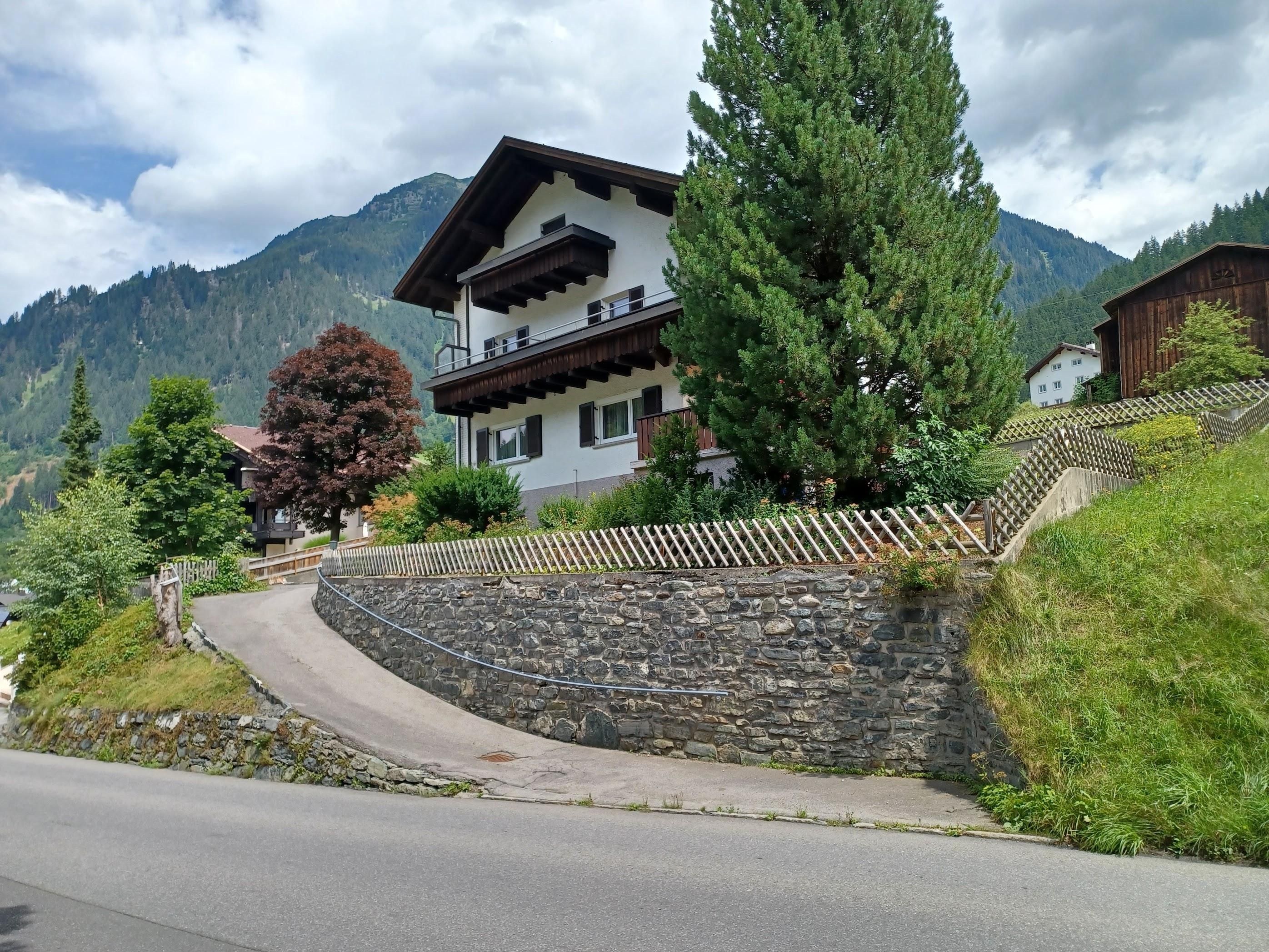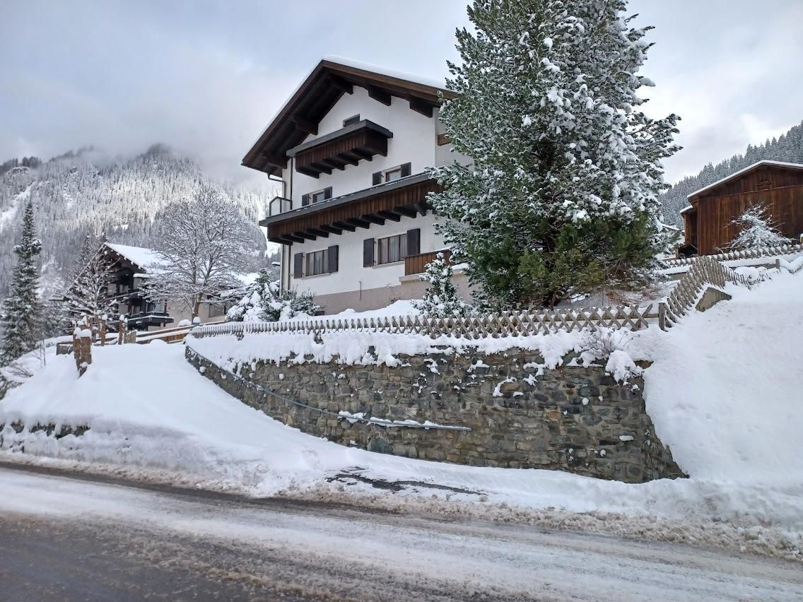 Unser Haus liegt direkt an der Dorfstraße von Gaschurn mit herrlichem Blick auf die beeindruckenden Berge.