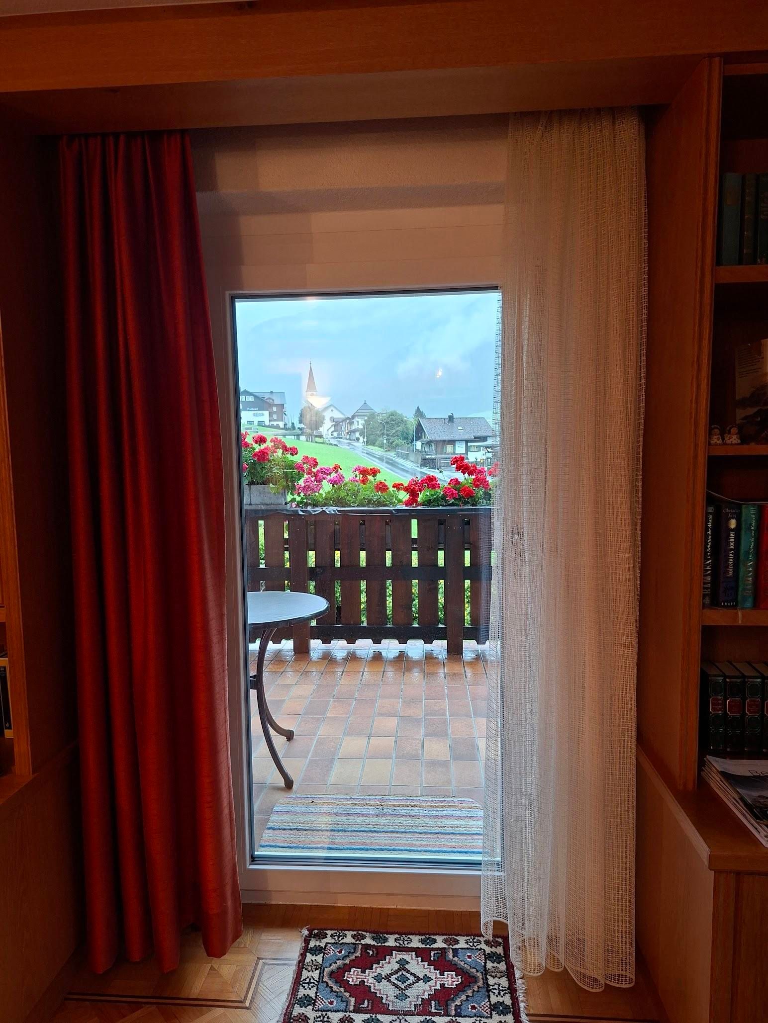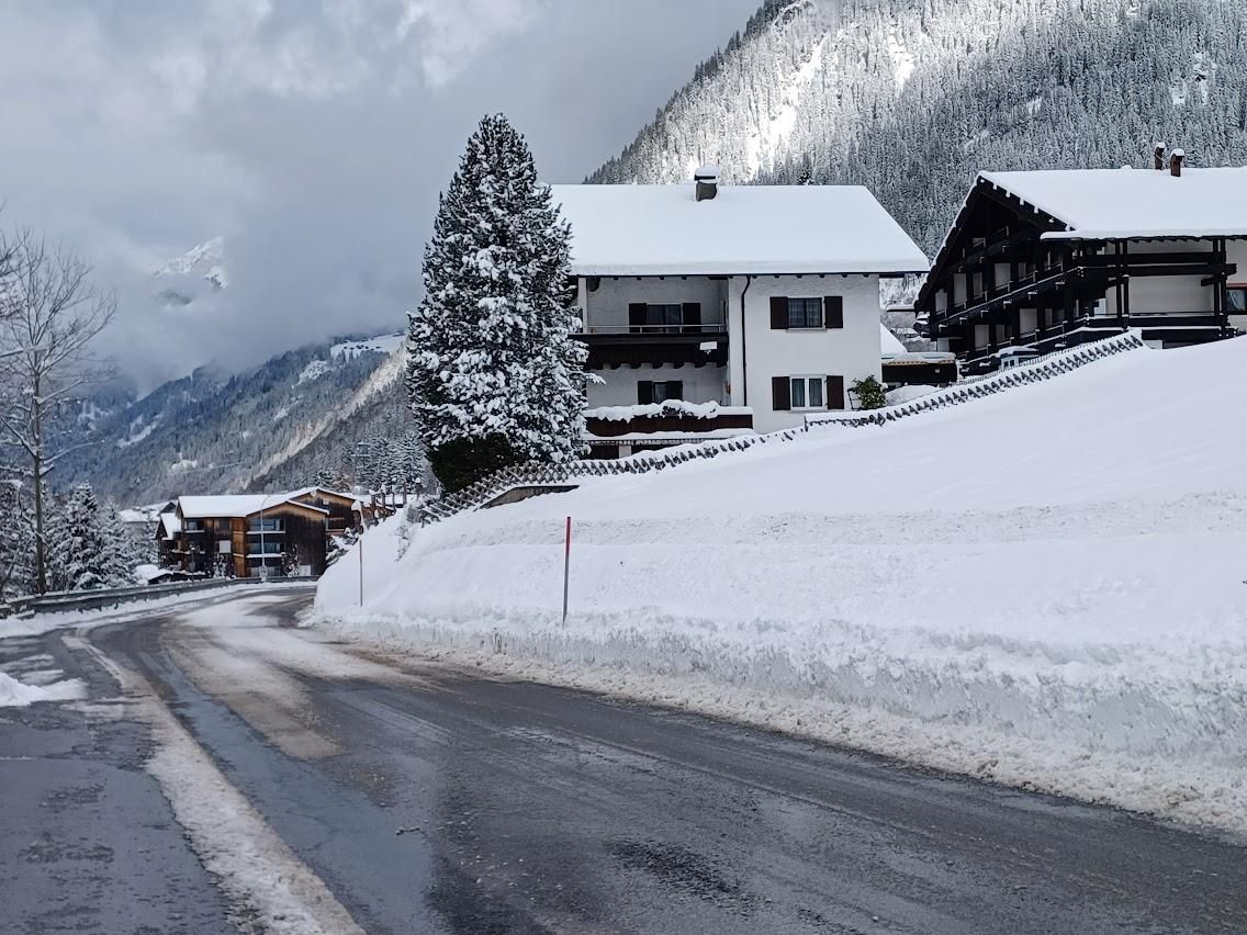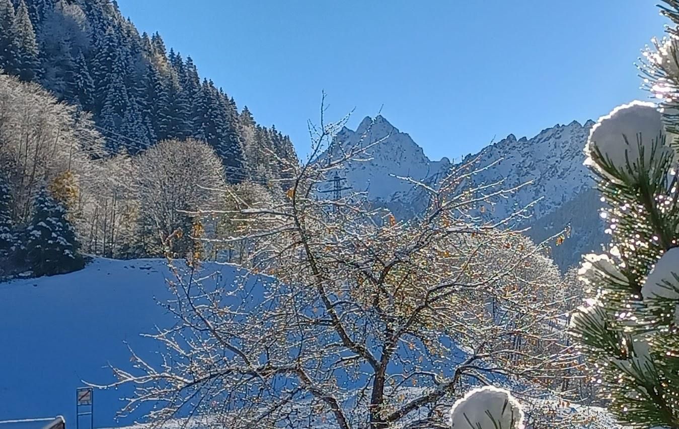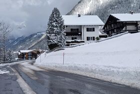 Unser Haus liegt direkt an der Dorfstraße von Gaschurn mit herrlichem Blick auf die beeindruckenden Berge.