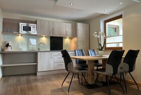 Gemütlich eingerichtetes Appartement (ca. 57 m²) mit Vorraum, Wohnküche mit Kochnische (Cerankochfeld, Kühlschrank/Gefrierfach, Kaffeemaschine, Geschirrspüler, Mikrowelle uvm.), Ess- und Wohnbereich mit Couch (Schlafgelegenheit für 2 Personen) 1 Doppelzimmer, 1 separates Zimmer mit Schlafmöglichkeit für 1 Erwachsenen oder 2 Kindern, 1 Badezimmer mit Dusche, 1 WC separat, Sat-TV, Durchwahl-Telefon, Internetanschluss und möblierter Balkon.