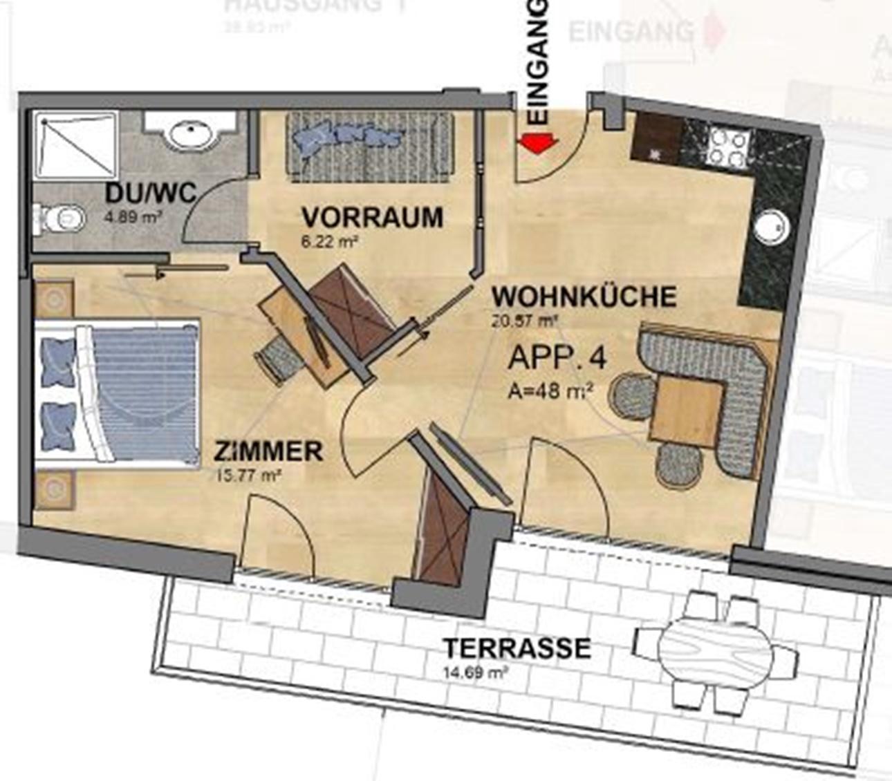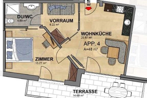 Top 4 mit ca. 48 m²: 2 Schlafzimmer, 1x mit Doppelbett und 1x mit Schlafsofa, 1 Badezimmer mit Dusche/WC, gemütlicher Wohnraum, eine vollausgestattete Küche mit Cerankochfeld, Backofen, Kühlschrank, Mikrowelle, Kaffeemaschine uvm. 14 m² Terrasse