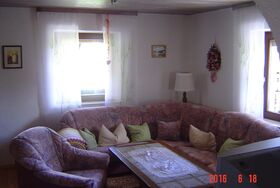 Gemütlich komplett ausgestattete Ferienwohnung im bayrischen Stil mit Fichtenmöbeln, Bauernstube mit Sofa, Terrasse ca 30 qm mit Gartenmöbeln.