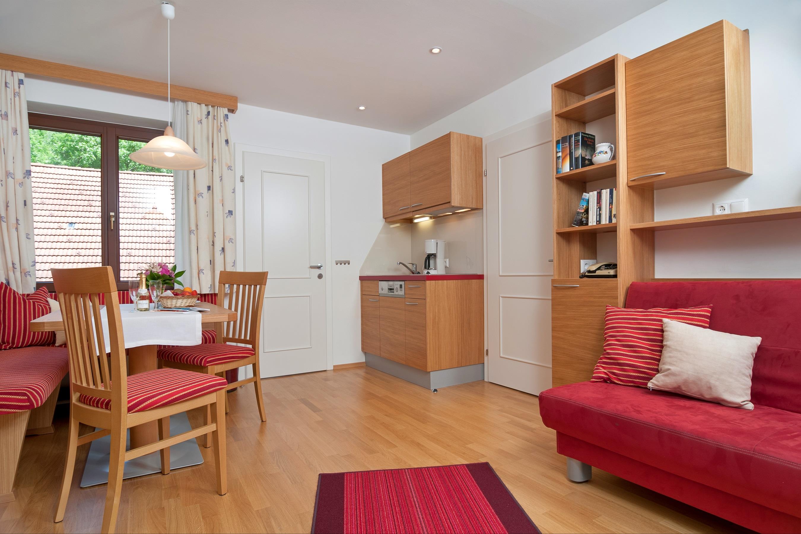 Gemütlicher Wohn- Schlafraum mit Sitzecke, moderner Küchenblock, Ausziehcouch, 2 Schlafräume mit je 2 Betten, Seeblick nach Westen-Abendsonne, Terrasse oder Balkon, komplett (Geschirrspüler, Mikrowelle etc) und liebevoll ausgestattet.