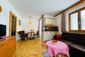 Ferienwohnung für 2-4 Personen 45 m²,mit einem Vorraum und ein Schlafzimmer, Wohn-Essraum mit integrierter Küchenzeile inkl. Mikrowelle, Kaffeemaschine, einer gemütlichen Eckbank mit Esstisch, sowie einer ausziehbaren Doppelcouch, SAT-TV. Balkon mit Seeblick. Dusche und WC sind getrennt.