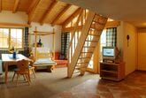 100m² Wohnung für 6 bis 8 Personen, romantische Dachwohnung mit Kachelofen und Sichtgebälk, Galerie und 2 Schlafzimmer mit 3 DU/WC, großzügige Wohnküche mit Backrohr und Spülmaschine, Terrasse mit bezaubernden Bergblick. Preis inkl. Endreinigung.