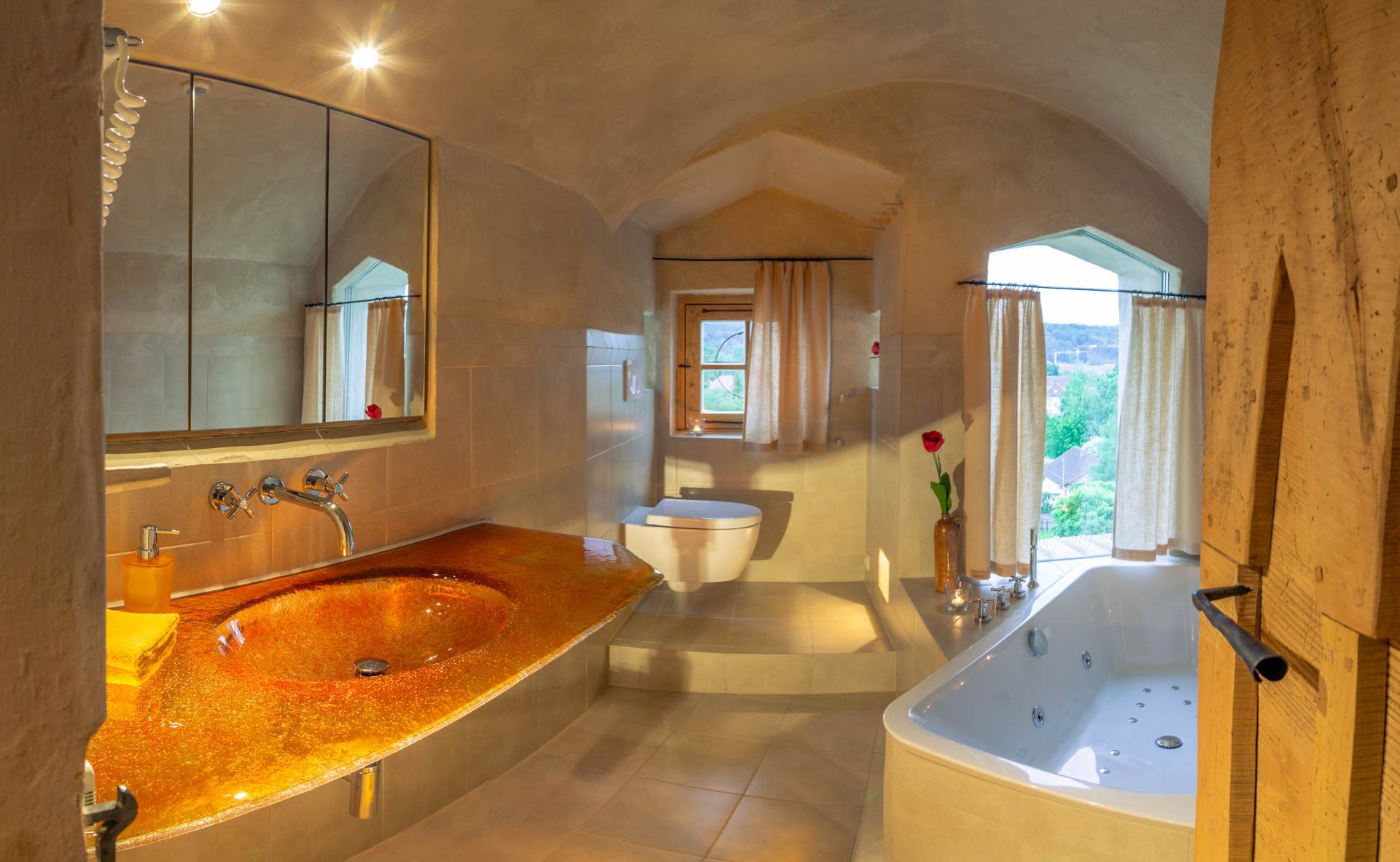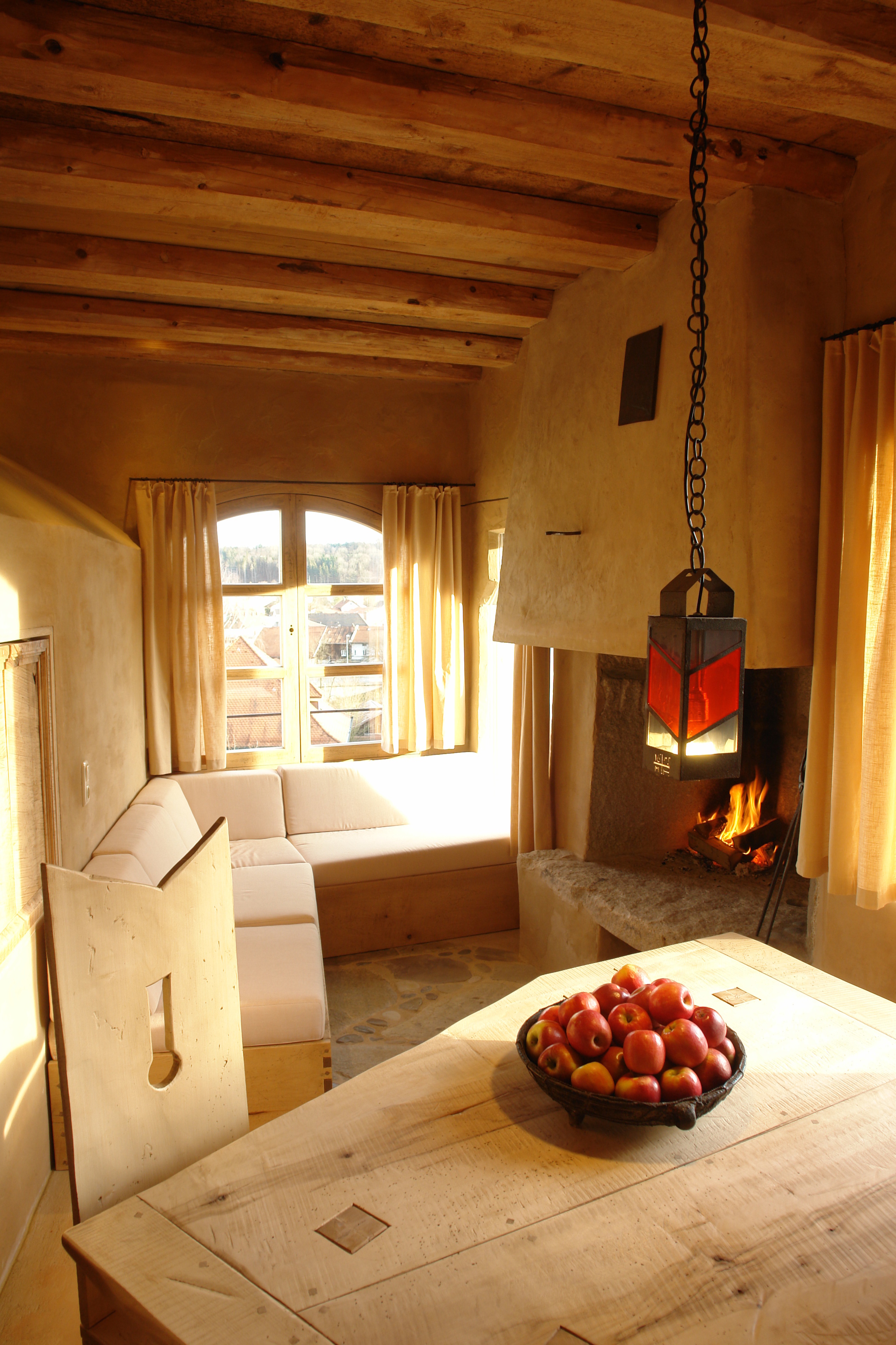 Die Küche aus massivem Holz mit mittelalterlicher Blechkutte, das Badezimmer in der Gewölbekuppel mit entspannender Whirlwanne und luxuriöser Regendusche und nicht zuletzt der fantastische Ausblick vom Herzogpalais auf Trostberg und die Chiemgauer Alpen garantieren unvergessliche Urlaubstage in einzigartigem Ambiente.