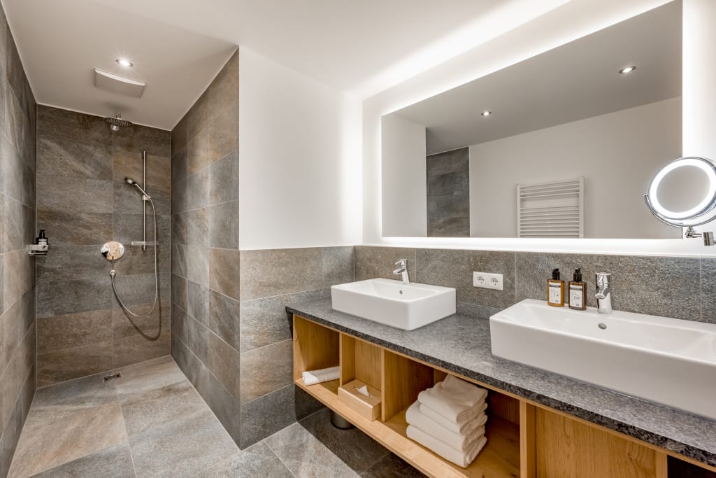 • 1 Badezimmer mit Regendusche und/oder Badewanne