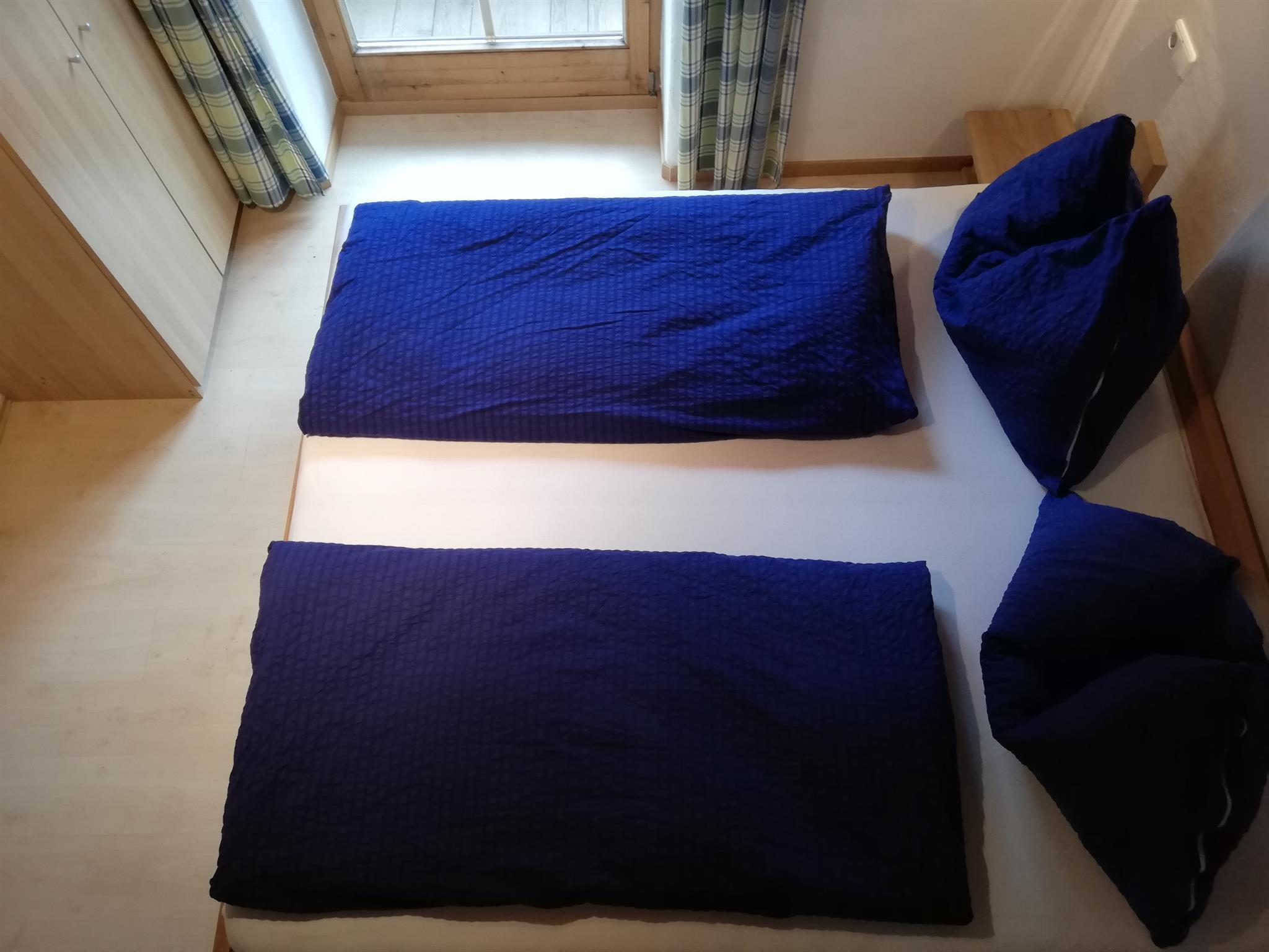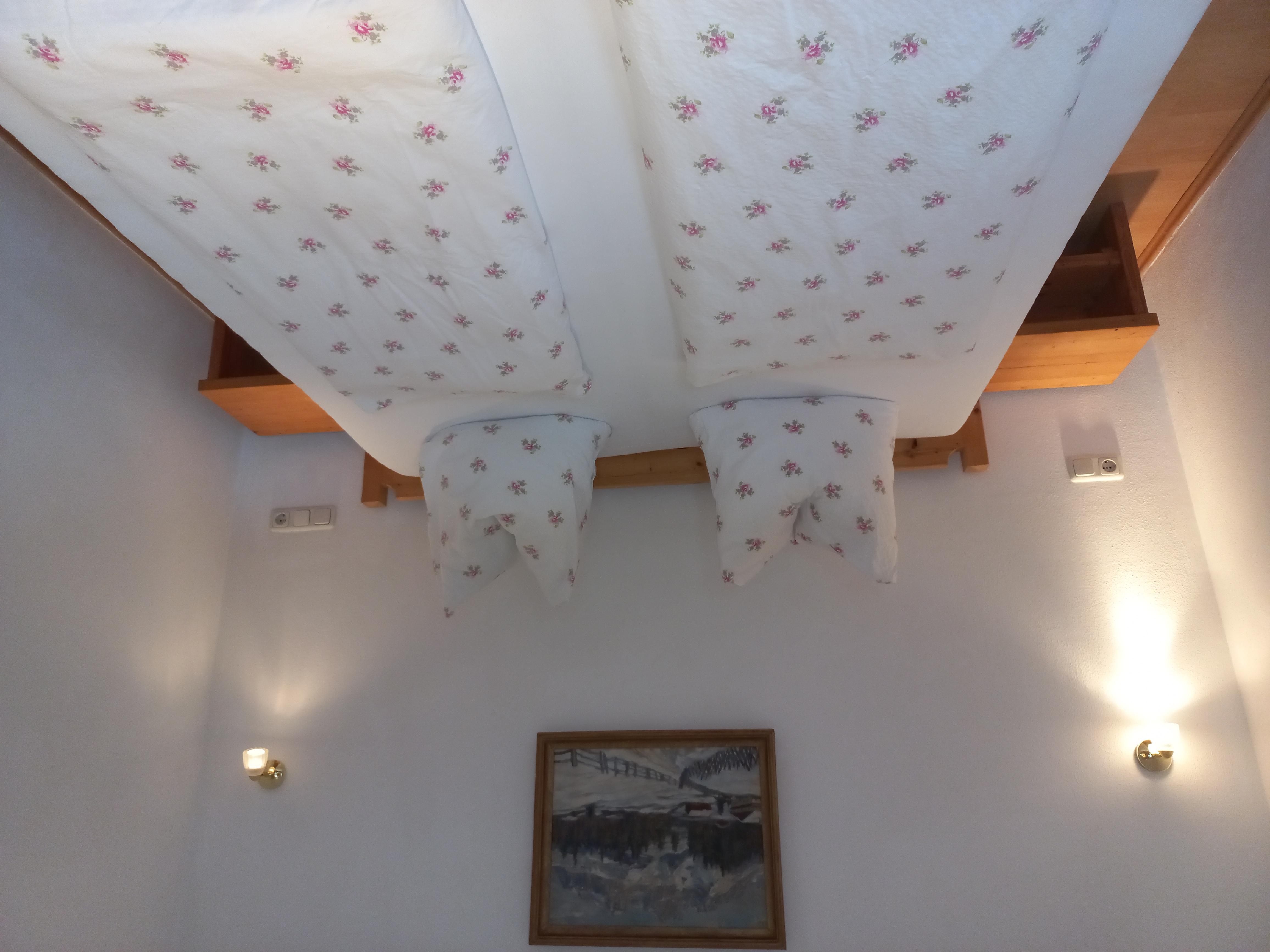 Die Ferienwohnung ist ca. 65 m² groß, 2 Schlafzimmer mit jeweils 1 Doppelbett. Im Wohnbereich gibts eine kleine Küche mit 4 Herdplatten, Kühlschrank, Kaffeemaschine, Wasserkocher und Sat/TV. Das Badezimmer hat eine Dusche und ein WC. Vom Wohnbereich kommt man mit einer Stiege zur Galerie, hier befinden sich noch 4 Einzelbetten. Die Ferienwohnung hat einen Balkon. Bettwäsche und Handtücher sind im Preis inbegriffen.