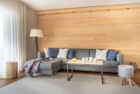 Die Deluxe Chalets (60-81 qm) haben einen separaten Wohnbereich mit gemütlicher Schlafcouch, eine Küche mit Essecke sowie einen schönen Balkon mit tollem Bergblick. Badezimmer mit separatem WC, großer Dampfdusche (Dampfbad) und finnischer Sauna. Zusätzliche Badewanne und Kamin auf Anfrage.