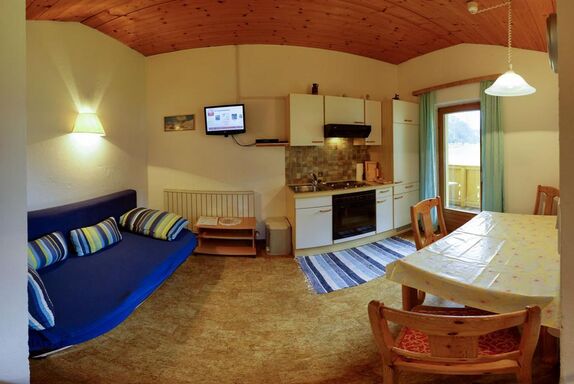 Das Apartment Zuckerhütl, befindet sich im 2. Stock (Mansarde) ca. 40 qm ein abgeschlossenes Schlafzimmer mit Couch, Dusche mit Waschbecken separat, WC, Wohnküche mit Flat-Sat. Wunderschönen PANORAMABLICK! Südbalkon