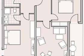 Alle Zimmer sind mit Badezimmern & Wohnzimmer und Schlafzimmer ausgestattet, die Zimmer haben auch einen Balkon.