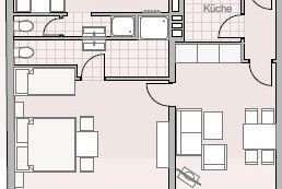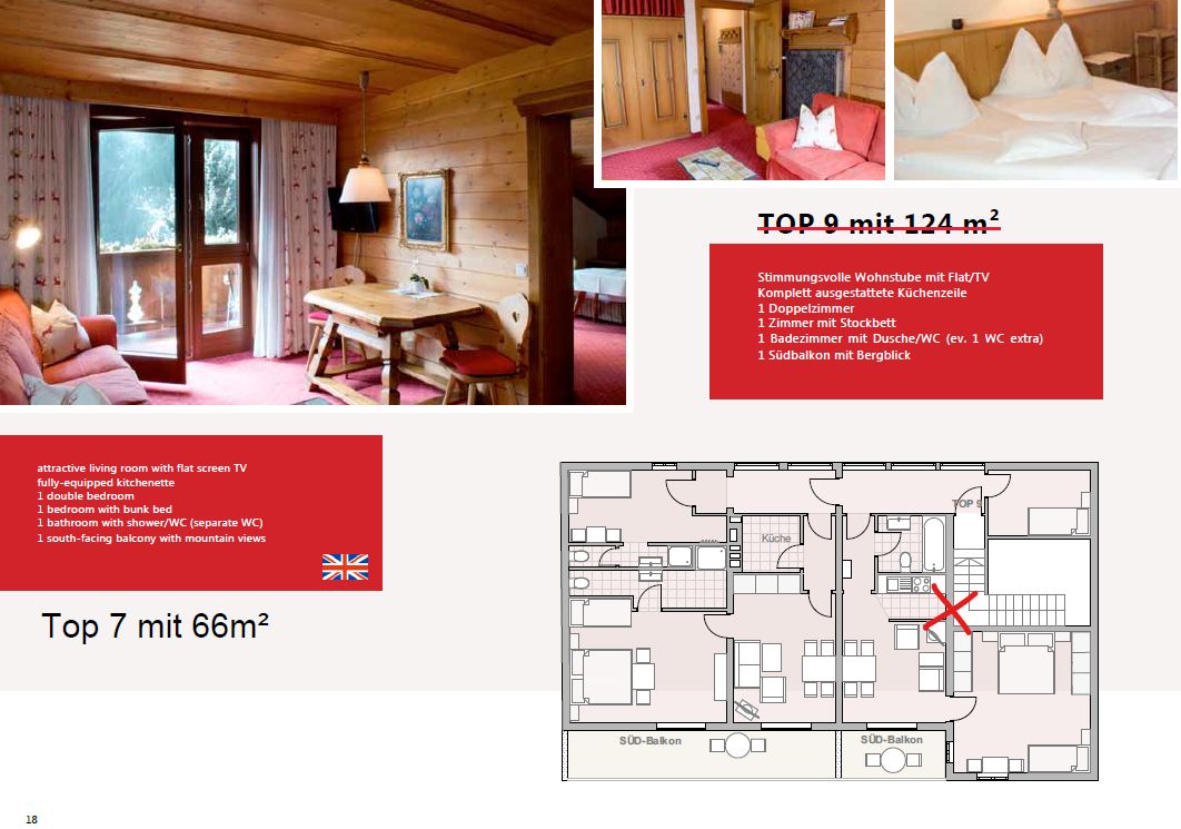 Die Wohnung verfügt über eine Küche, in der Sie Ihre eigenen Mahlzeiten zubereiten können. Ein geräumiges Wohnzimmer lädt zum Entspannen ein und bietet einen herrlichen Blick auf die majestätischen Berge. Die Wohnungen bieten Platz für 2-6 Personen in getrennten Schlafzimmern, die im alpinen traditionellen Stil eingerichtet sind. Hier können Sie sich nach einem aktiven Tag in den Bergen wunderbar erholen.