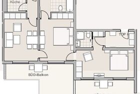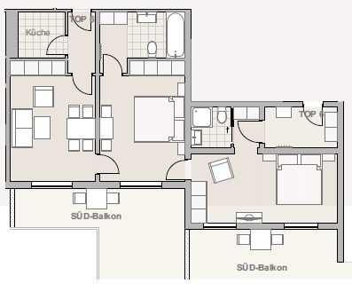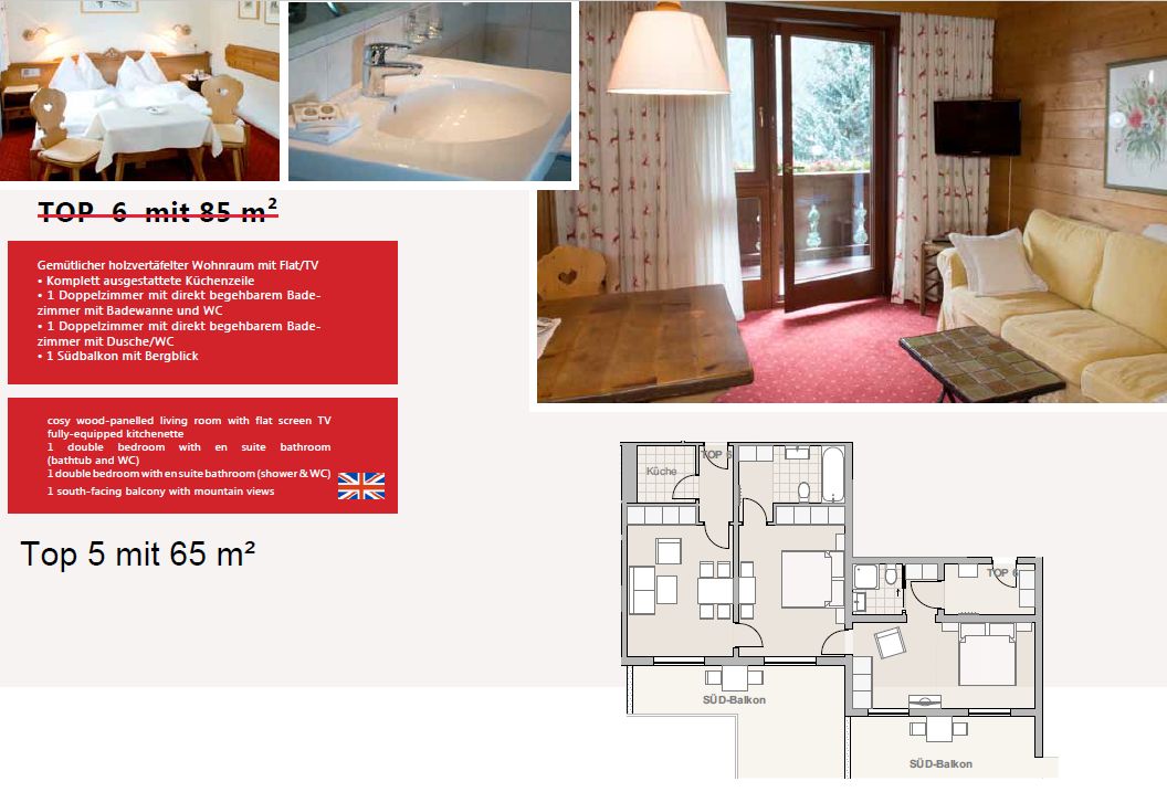 Die Wohnung verfügt über eine Küche, in der Sie Ihre eigenen Mahlzeiten zubereiten können. Ein geräumiges Wohnzimmer lädt zum Entspannen ein und bietet einen herrlichen Blick auf die majestätischen Berge. Die Wohnungen bieten Platz für 2-6 Personen in getrennten Schlafzimmern, die im alpinen traditionellen Stil eingerichtet sind. Hier können Sie sich nach einem aktiven Tag in den Bergen wunderbar erholen.
