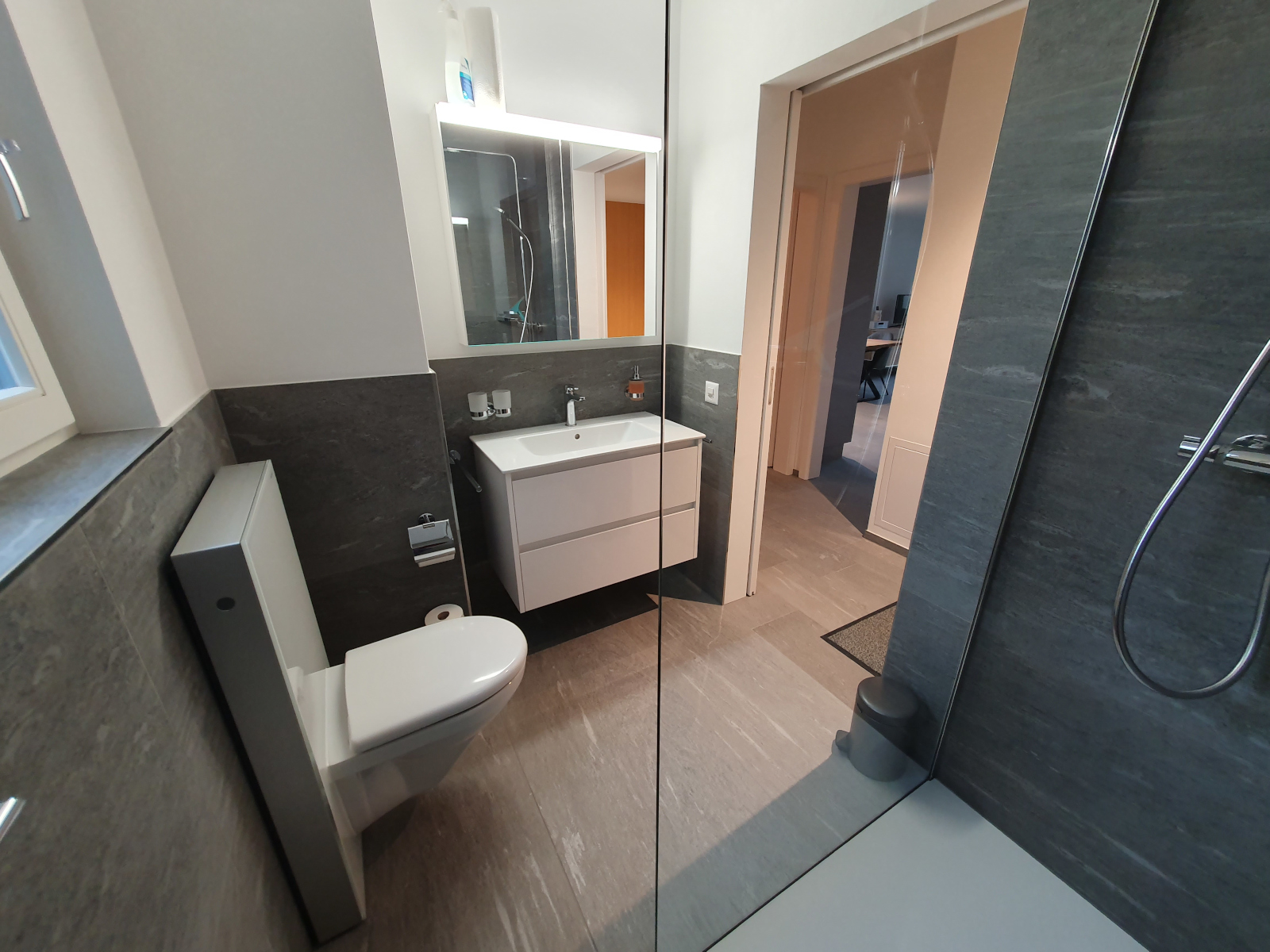 1 Badezimmer mit begehbarer Dusche, Lavabo mit Spiegelschrank und WC. Badezimmerwäsche ist durch den Mieter mitzubringen. Kann auf Wunsch für CHF 10.00 pro Person zur Verfügung gestellt werden. Andere Räume: