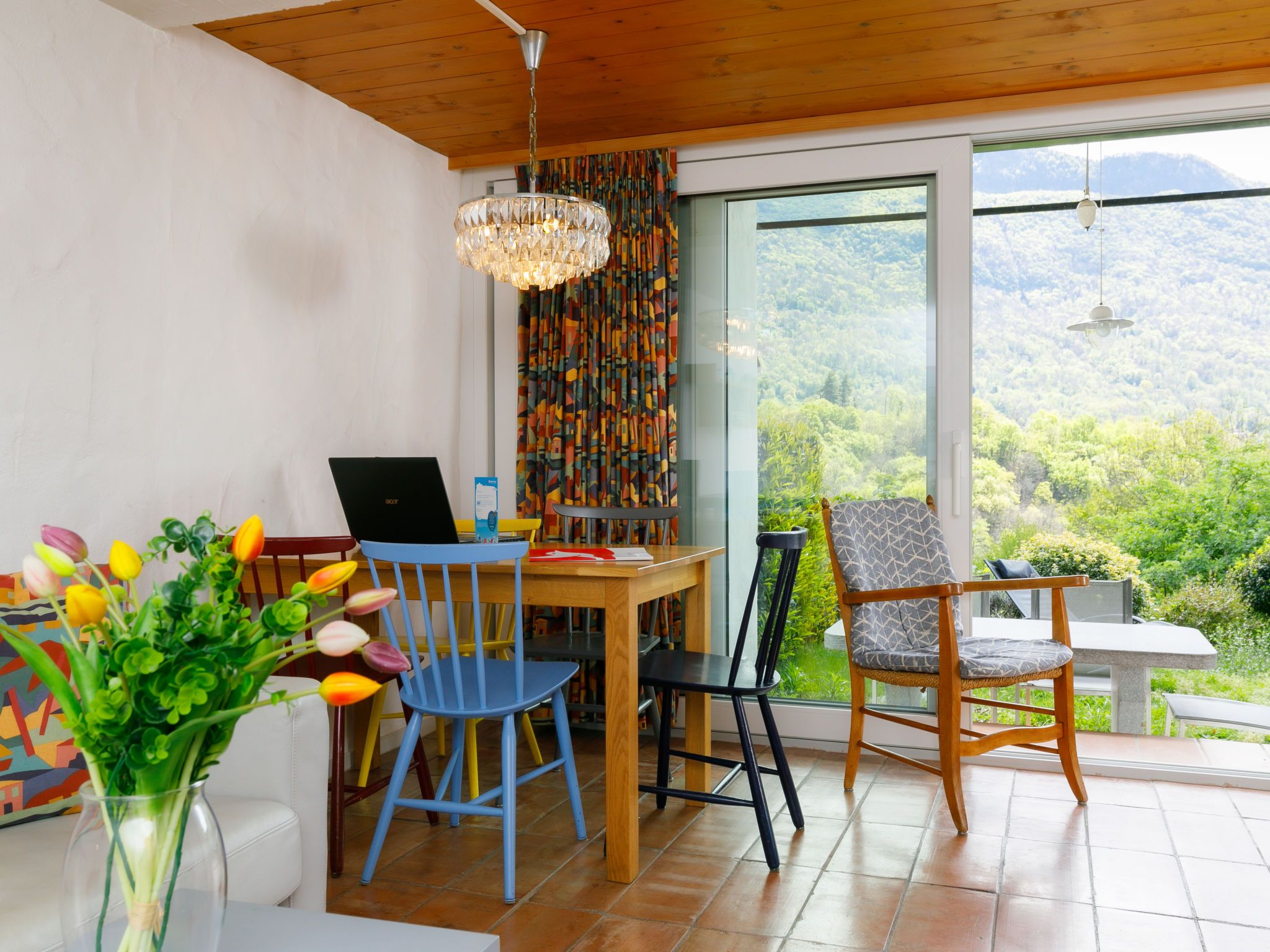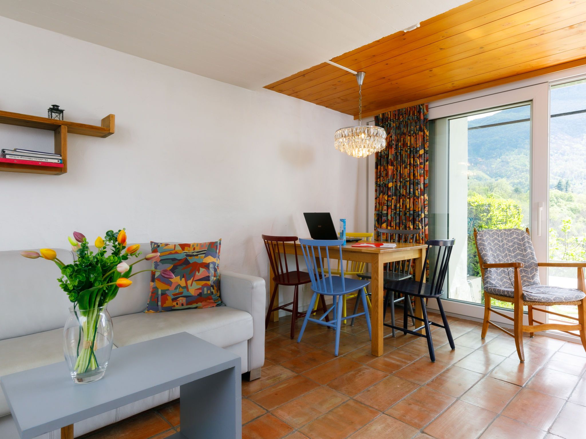 Villaggio Sureggio A7 mit TicinoTicket, 3-Zimmer-Wohnung 65 m2 auf 2 Stockwerken. Komfortabel und gemütlich eingerichtet: offenes Wohn-/Esszimmer mit offenem Kamin und Sat-TV. Ausgang zum Gartensitzplatz. (Backofen, Geschirrspüler, 4 Glaskeramikplatten, Toaster, Wasserkocher, Mikrowelle, elektrische Kaffeemaschine, Kapseln für die Kaffeemaschine (Nespresso) extra, Racletteofen, Fondue Set (Chinoise, Käse)). Dusche/WC. E-Heizung. Obergeschoss: 1 Doppelzimmer mit 1 Doppelbett (2 x 90 cm, Länge 200 cm). 1 Zimmer mit 1 Bett (90 cm, Länge 200 cm), 1 x 2 Etagenbetten (90 cm, Länge 200 cm). Dusche/WC. E-Heizung. Natursteinboden. Gartensitzplatz. Terrassenmöbel, Liegestühle. Sehr schöne Panoramasicht auf die Berge und die Landschaft. Zur Verfügung: Internet (WLAN). Parkplatz Nr. 8 (extra, überdacht). Bitte beachten: geeignet für Familien. Nichtraucher-Unterkunft, Parkplatz nur für kleine Wagen. Maximal 1 Haustier/Hund erlaubt. Eigener Eingang. NL-