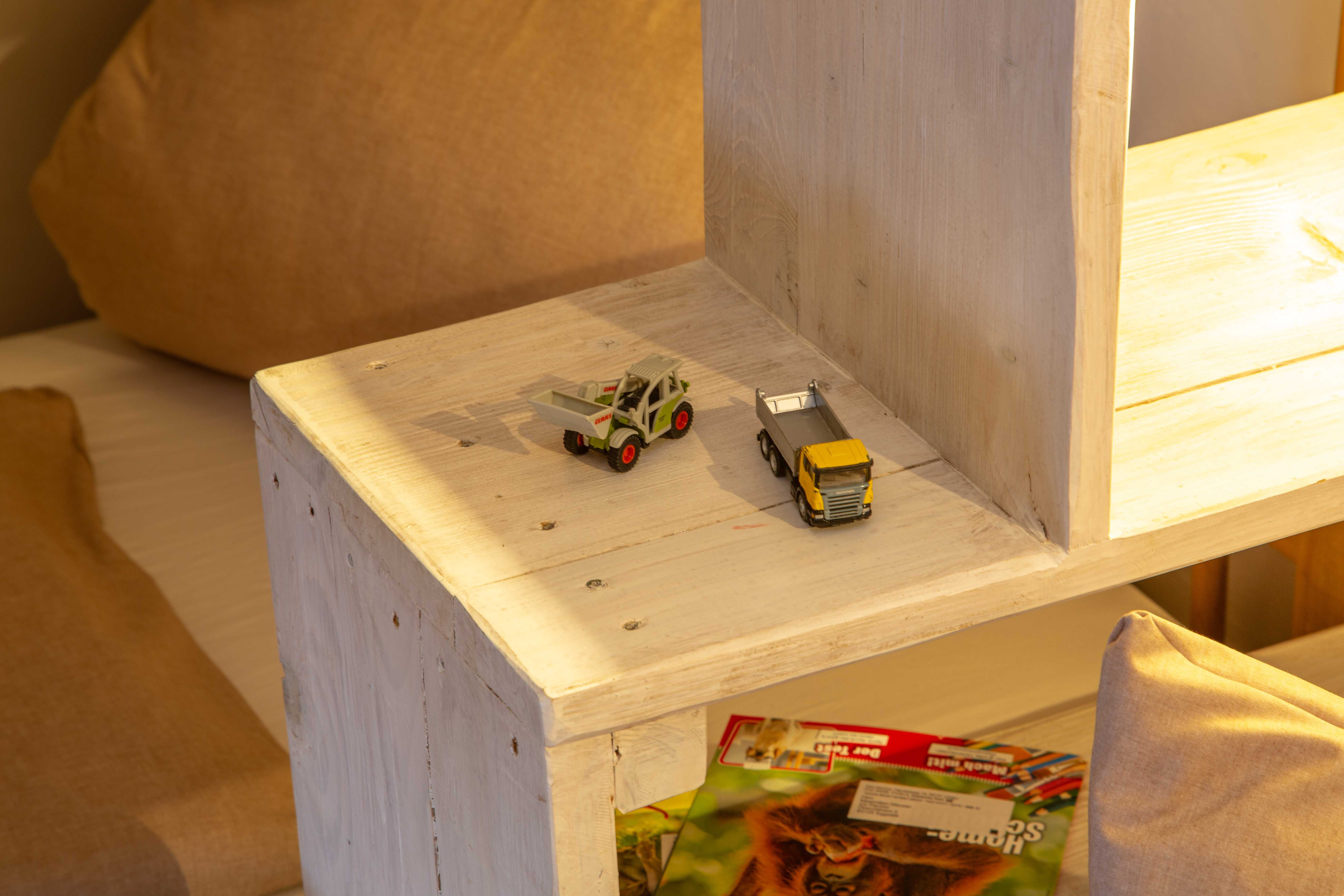 Wenn die Sonne mal nicht mitspielt, können unsere Gäste in unseren großen Aufenthaltsraum ausweichen. Hier warten Spiele und Puzzle, Kaufladen, Puppenecke und Brettspiele, Kicker und reichlich Platz darauf, die Zeit zu vertreiben.