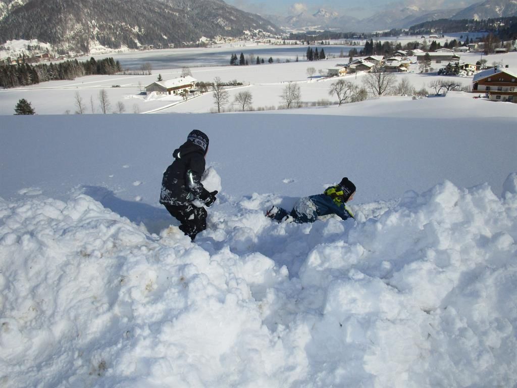 Unsere Ferienwohnung besteht aus einem Schlafzimmer, Wohnzimmer mit Küchenzeile sowie Dusche und WC. Vom Balkon aus kann man den Walchsee sehen! Eine Bitte: Bringen Sie Handtücher und Geschirrtücher selber mit!
