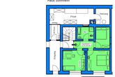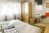 Obergeschoss, 40 m², Standardbelegung mit 2 Personen, bis zu 3 Personen ( max. 3 Erwachsene oder 2 Erwachsene + 2 Kinder). Gemütliche Ferienwohnung mit 1 Wohn-/Schlafraum (Schlafsofa), Kochzeile, 1 Doppelbettzimmer mit Dusche, WC, Safe, Kabel-TV, Internetanschluss über W-Lan, Dusche und WC extra. Balkon. Parkgelegenheit am Haus.