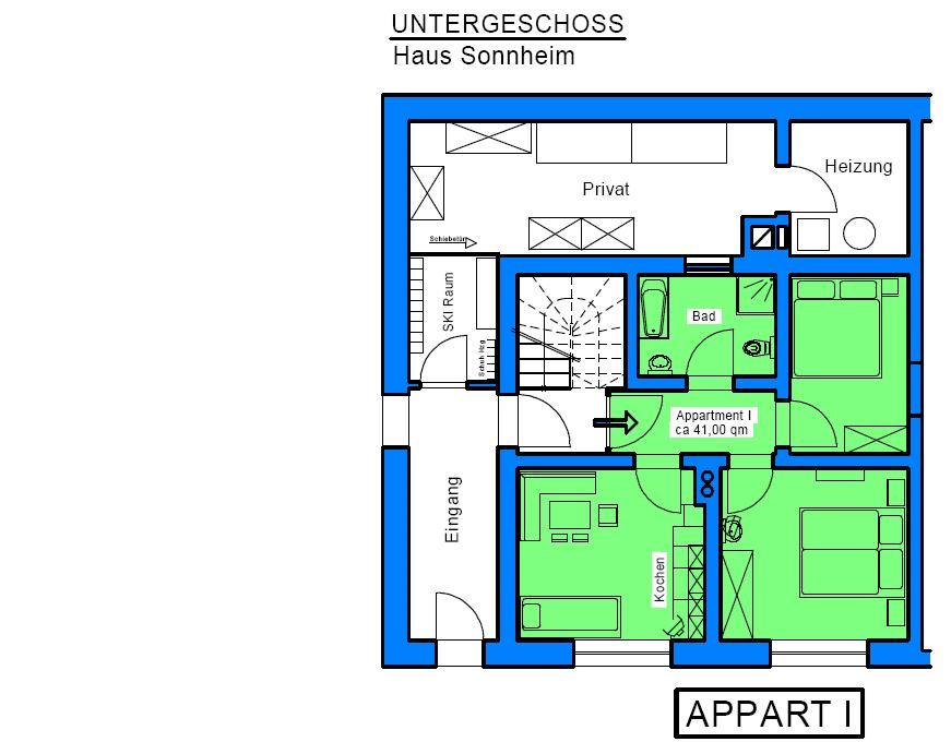 Erdgeschoss, 43 m², Gemütliche Ferienwohnung mit 2 Schlafräumen für 2 Erwachsene und 2 Kinder bis 15 Jahre, 1 Wohn-/Essraum, Küchenzeile, Essecke, Badezimmer mit Badewanne und Dusche, WC, Vorraum mit Garderobe. Kabel-TV, Internetzugang über W-LAn, Safe. Parkgelegenheit am Haus.