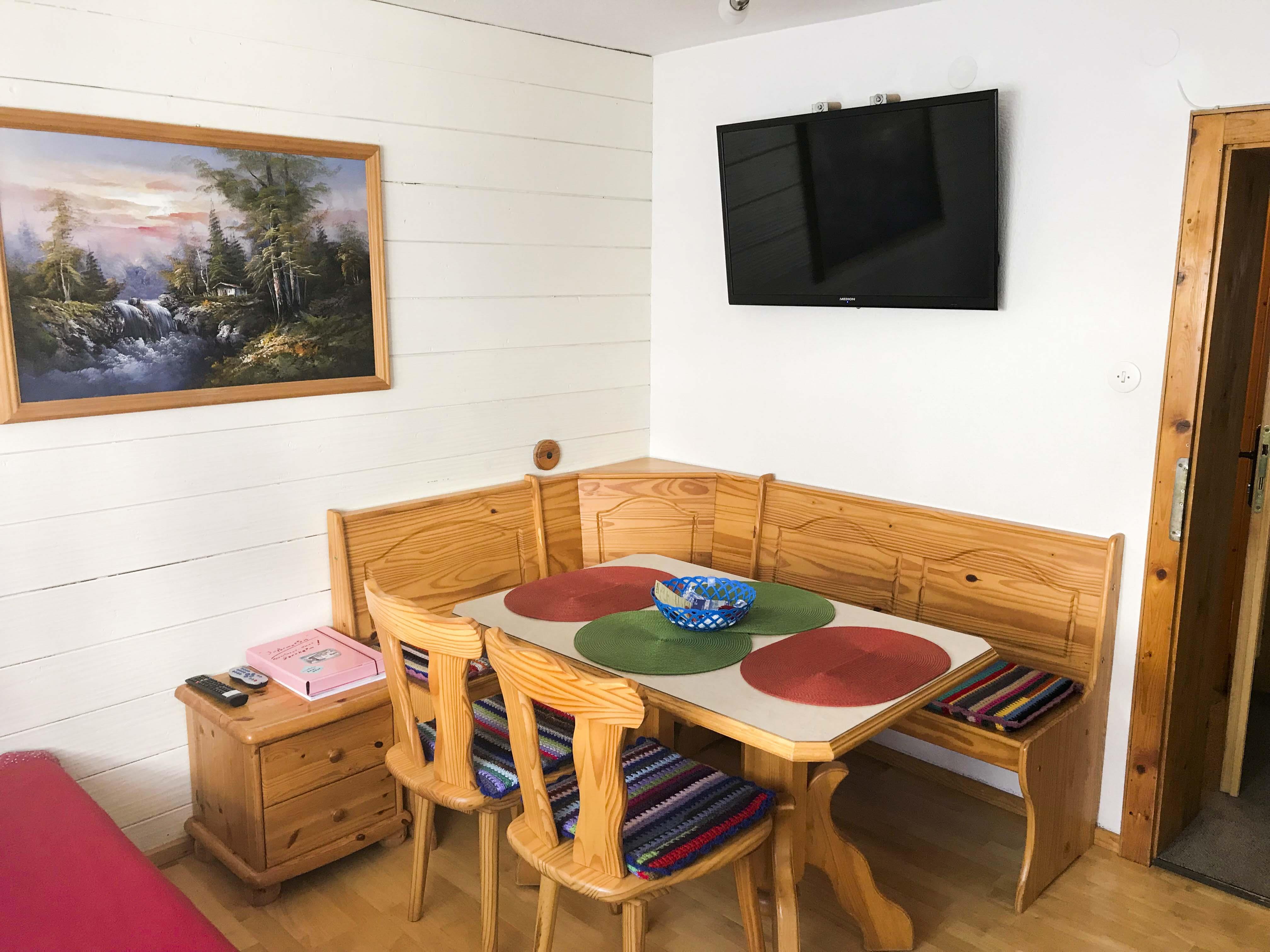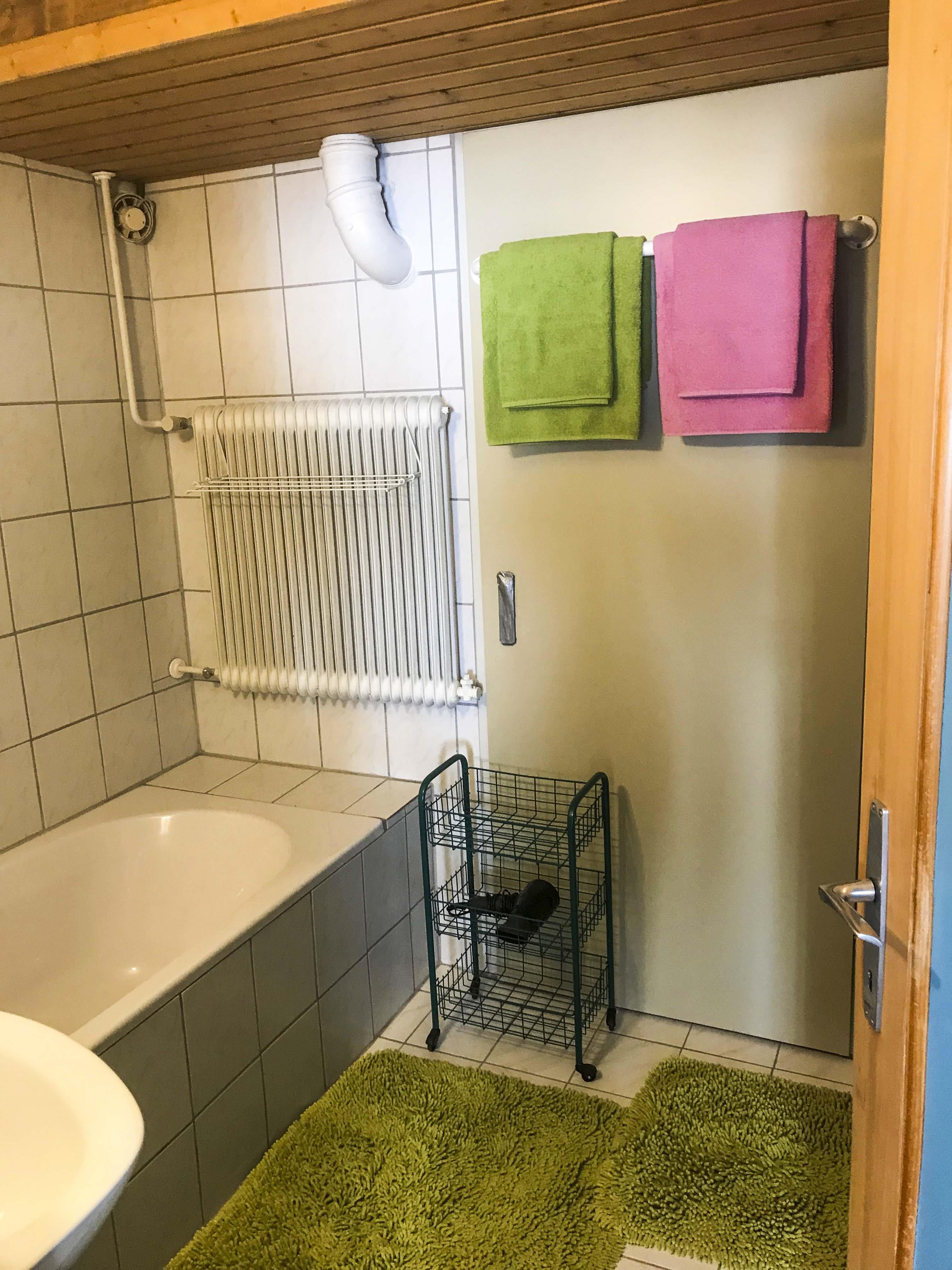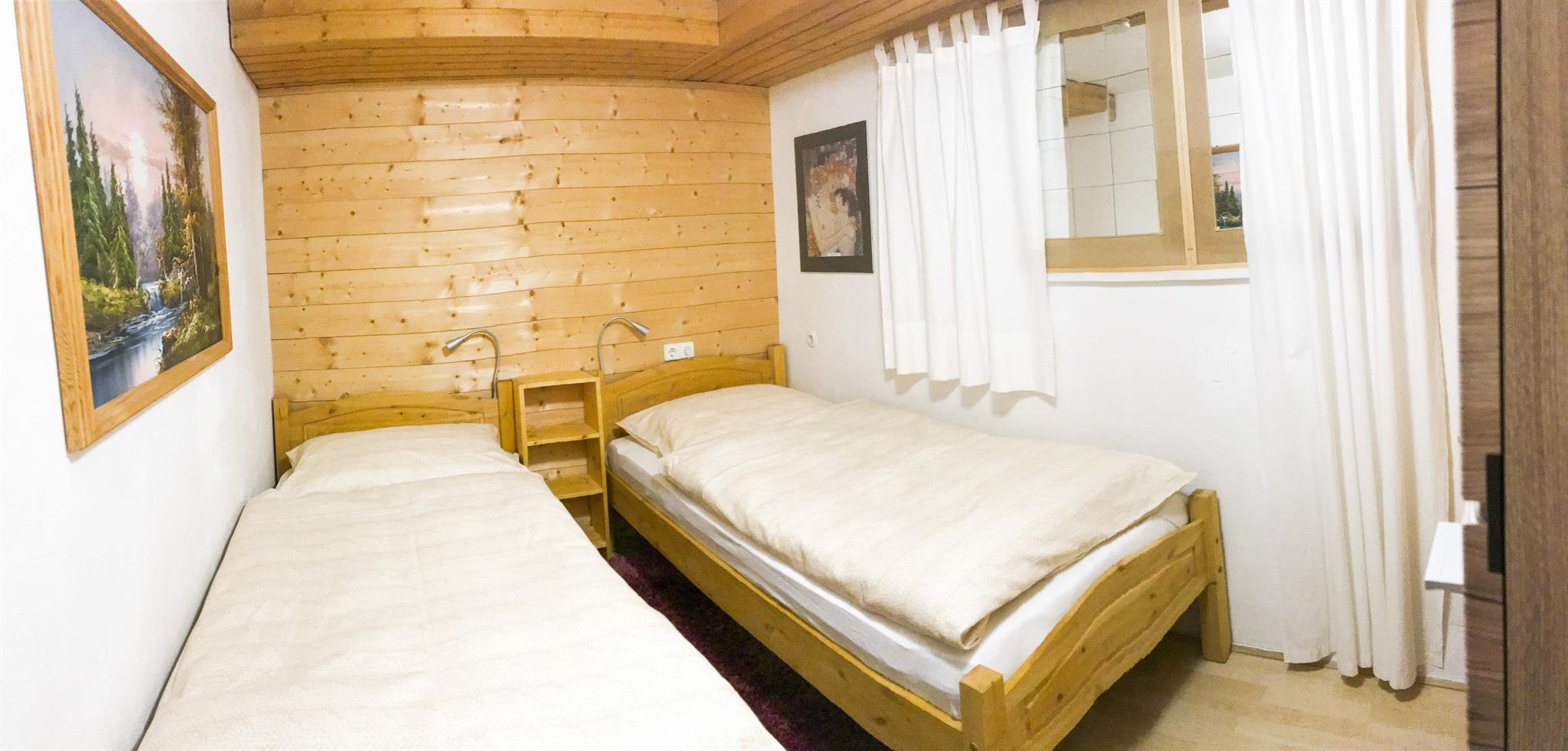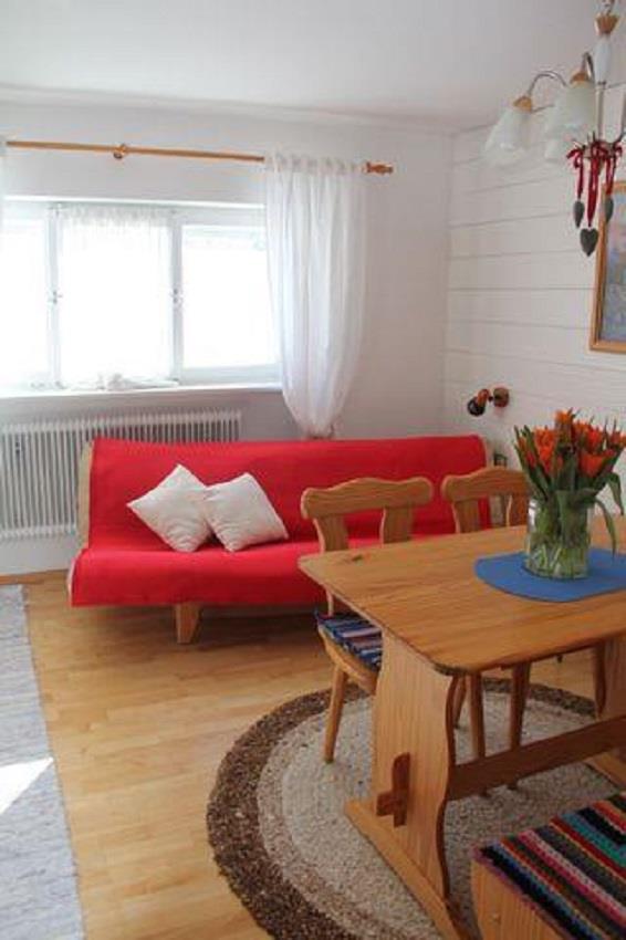 Obergeschoss, 35 m², Standardbelegung mit 2 Personen. 1 Doppelbettzimmer, 1 Aufenthalts-Stübchen mit Kochgelegenheit, 1 Dusche, WC, Kabel-TV, Safe, Internetanschluss über W-Lan. Parkgelegenheit am Haus