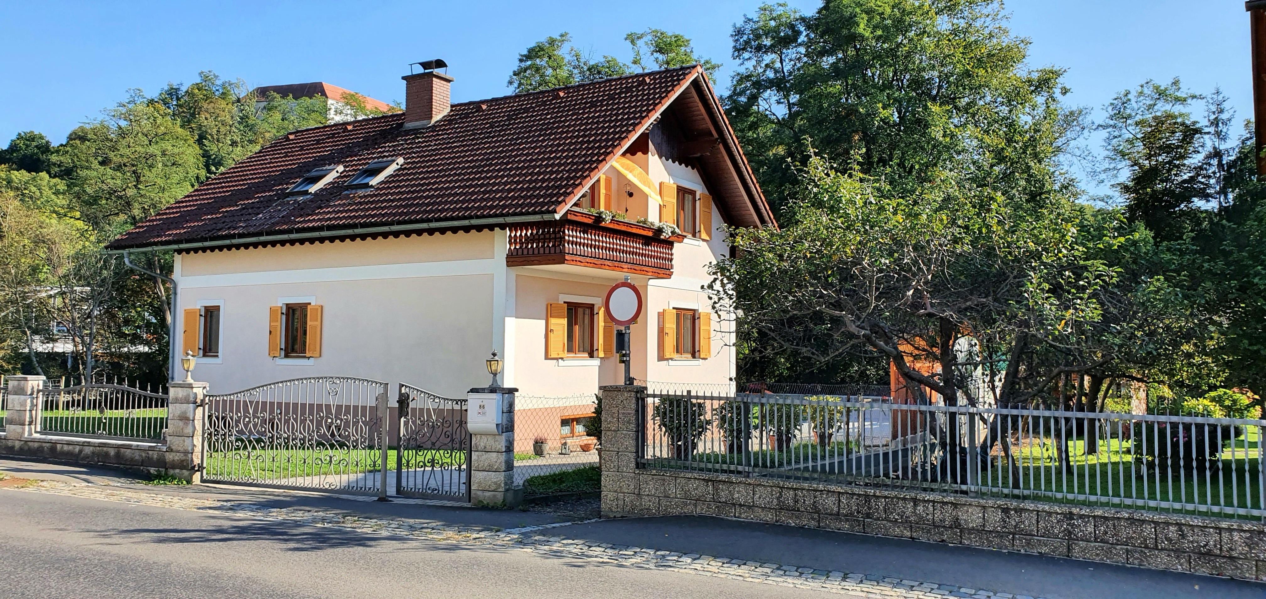 Im Dachgeschoß befindet sich eine zweite modern nostalgisch eingerichtete Ferienwohnung (73m2) Wohnzimmer mit offener Küche und Essplatz, geräumigen Schlafzimmer, Bad, Dusche, WC und Waschmaschine und großem Südwestbalkon mit Blick auf die Murauen und Schloss Obermureck für 4 Personen. In den Wohnungen ist ein DVD-Player mit einem umfangreichen CD und DVD-Sammlung vorhanden. Auf Wunsch bieten wir auch einen Brötchen Service der slowenischen Mura – Bäckerei für unsere Gäste an.