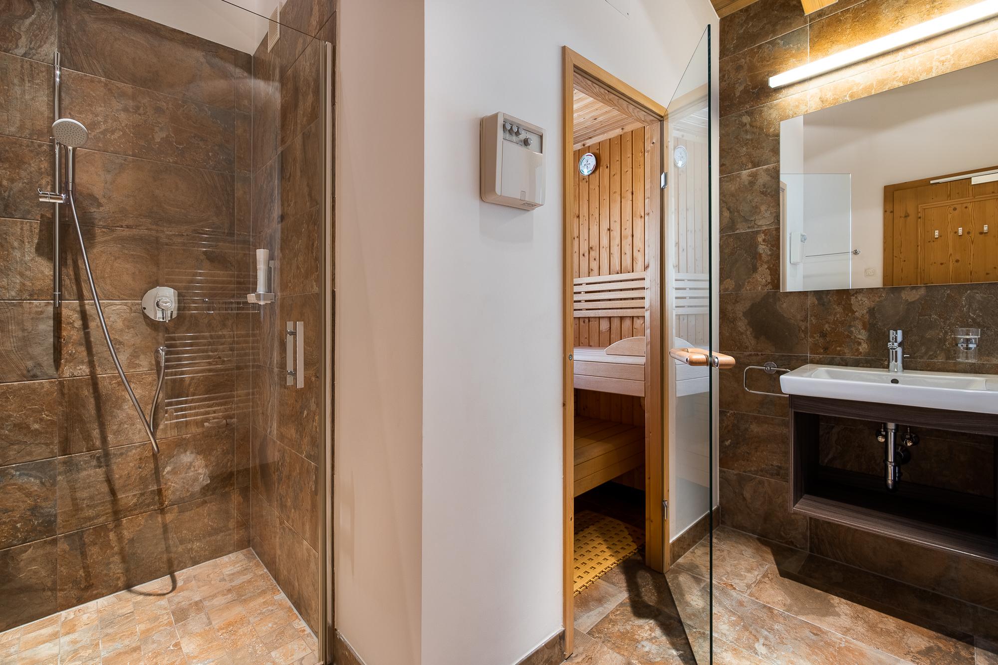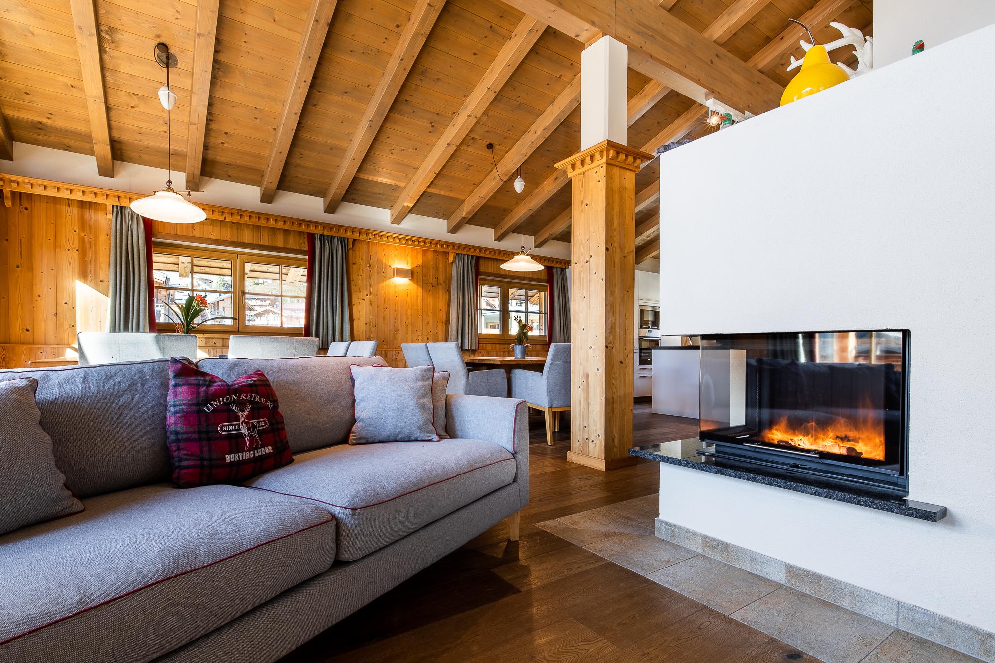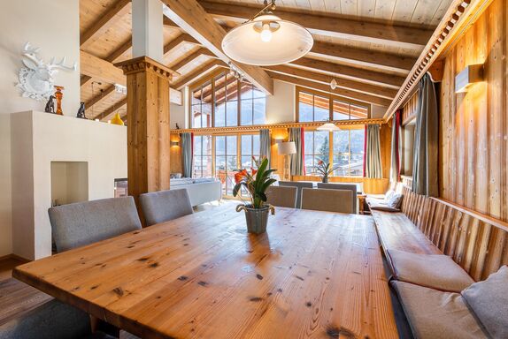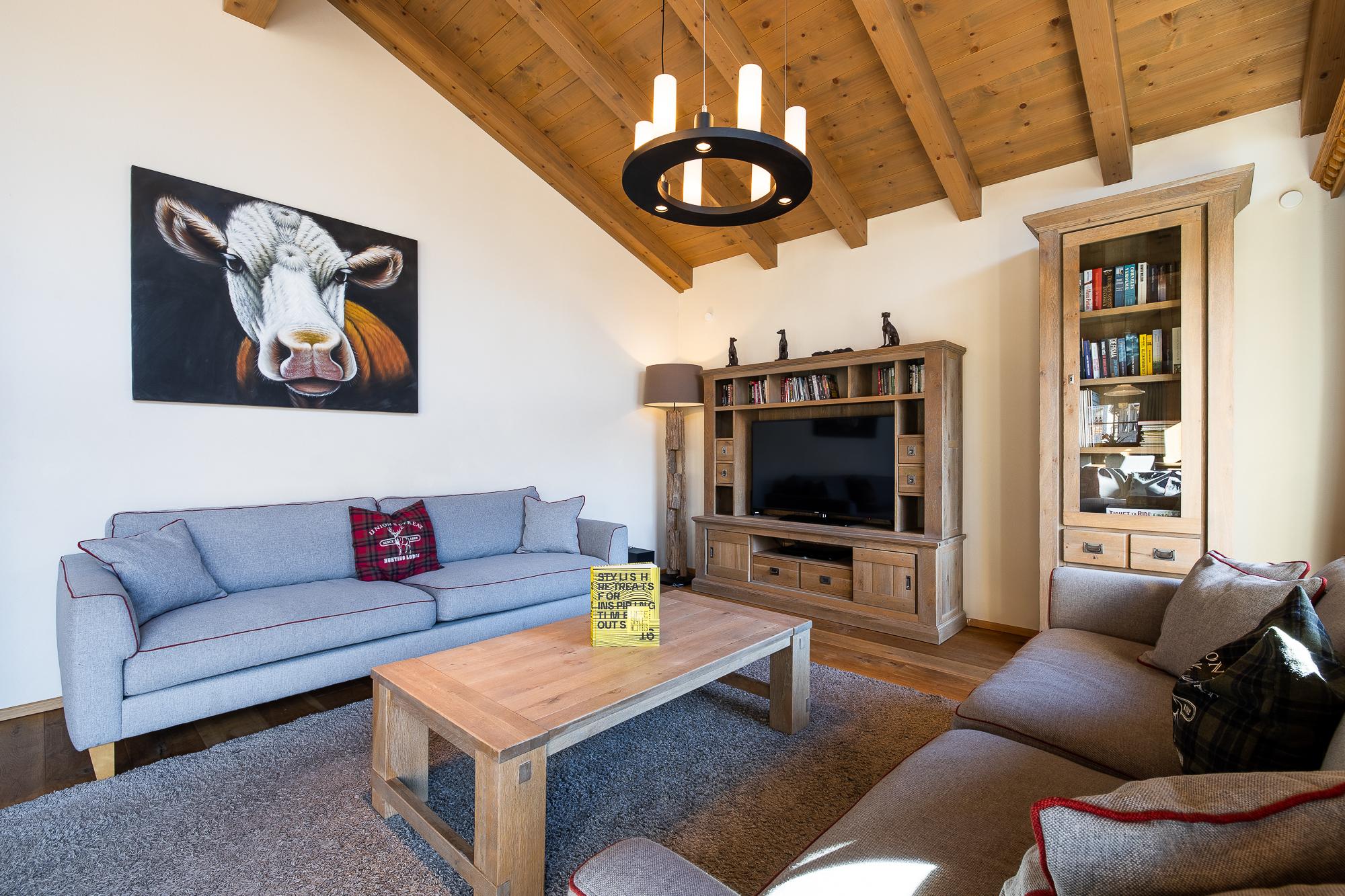 Das großzügig angelegte Chalet lässt auf 3 Etagen keine Wünsche offen. Der geschmackvolle Wohnbereich ist mit Kamin und Flat-TV ausgestattet. Das Chalet verfügt über kostenloses WLAN. Ein großer Essbereich mit offener Küche bietet viel Komfort und ist ausgestattet mit Toaster, Wasserkocher, Mikrowelle, Geschirr, Filterkaffee- und Espressokaffeemaschine. Die 8 Schlafräume mit King Size-Boxspringbetten verfügen über Flat-TV und direkten Zugang zu Balkon oder Terrasse. In zwei der 8 Schlafräume ist je ein Stockbett. Außerdem gibt es 4 hochwertige Badezimmer mit Badewanne oder Dusche. Ein eigener Skikeller, Sauna, sowie eine große Terrasse zählen zu den Highlights dieses Chalets mit außergewöhnlicher Privatsphäre.