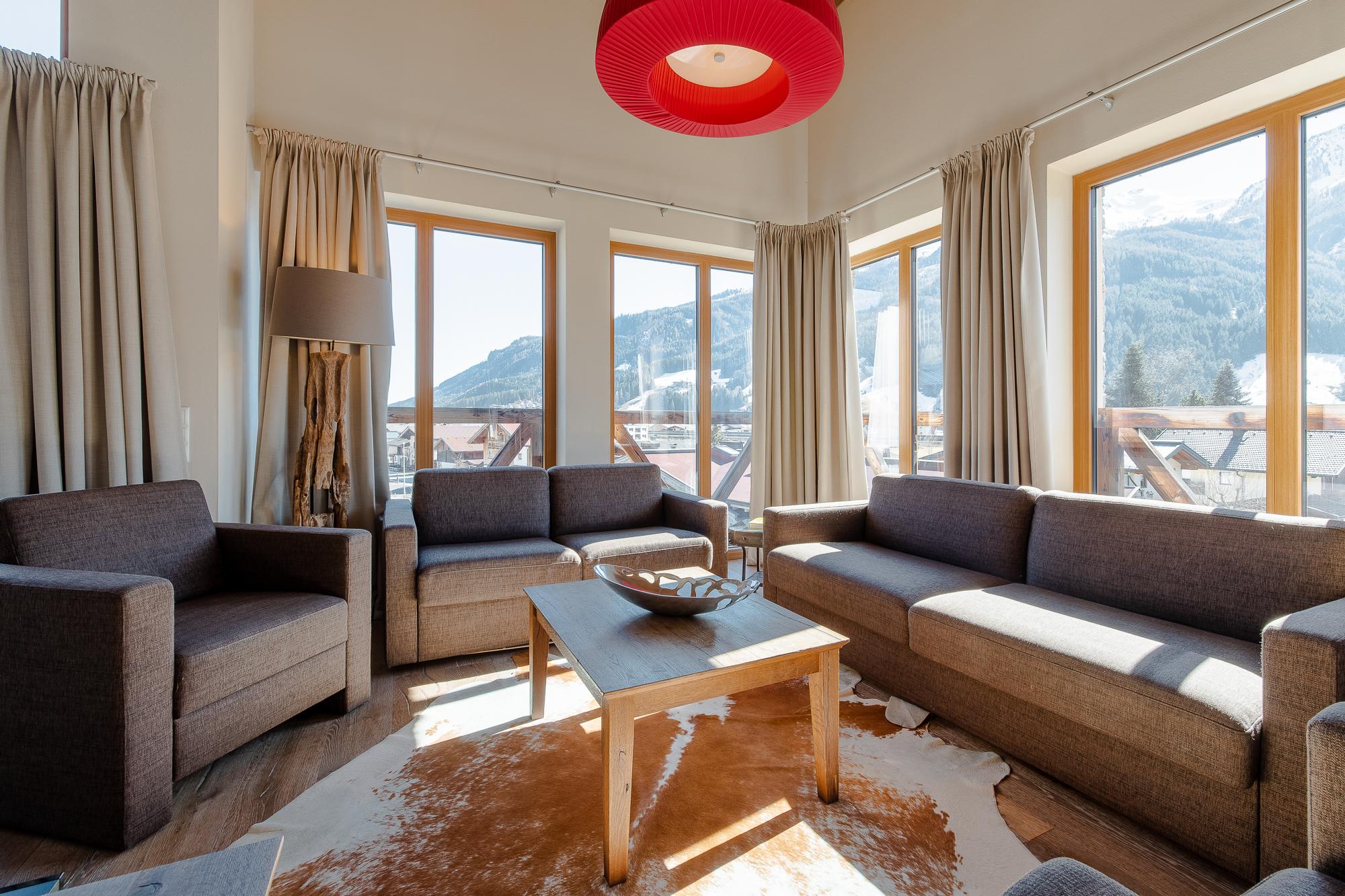 Alle Apartments und Penthouses der Wildkogel Resorts sind mit modernen Möbeln und traditionellen Materialien eingerichtet und verfügen über einen geräumigen Wohnbereich mit einem Flachbild-Sat-TV. Ihre Mahlzeiten können Sie in Ihrer modernen offenen Küchenzeile mit einem Essbereich zubereiten und genießen.