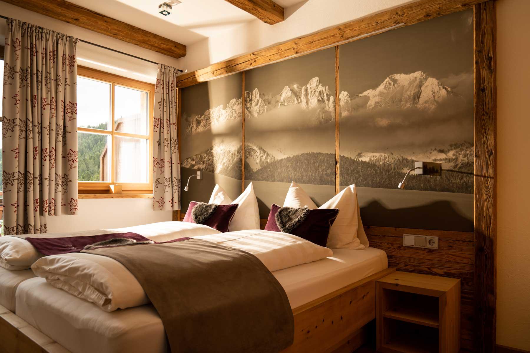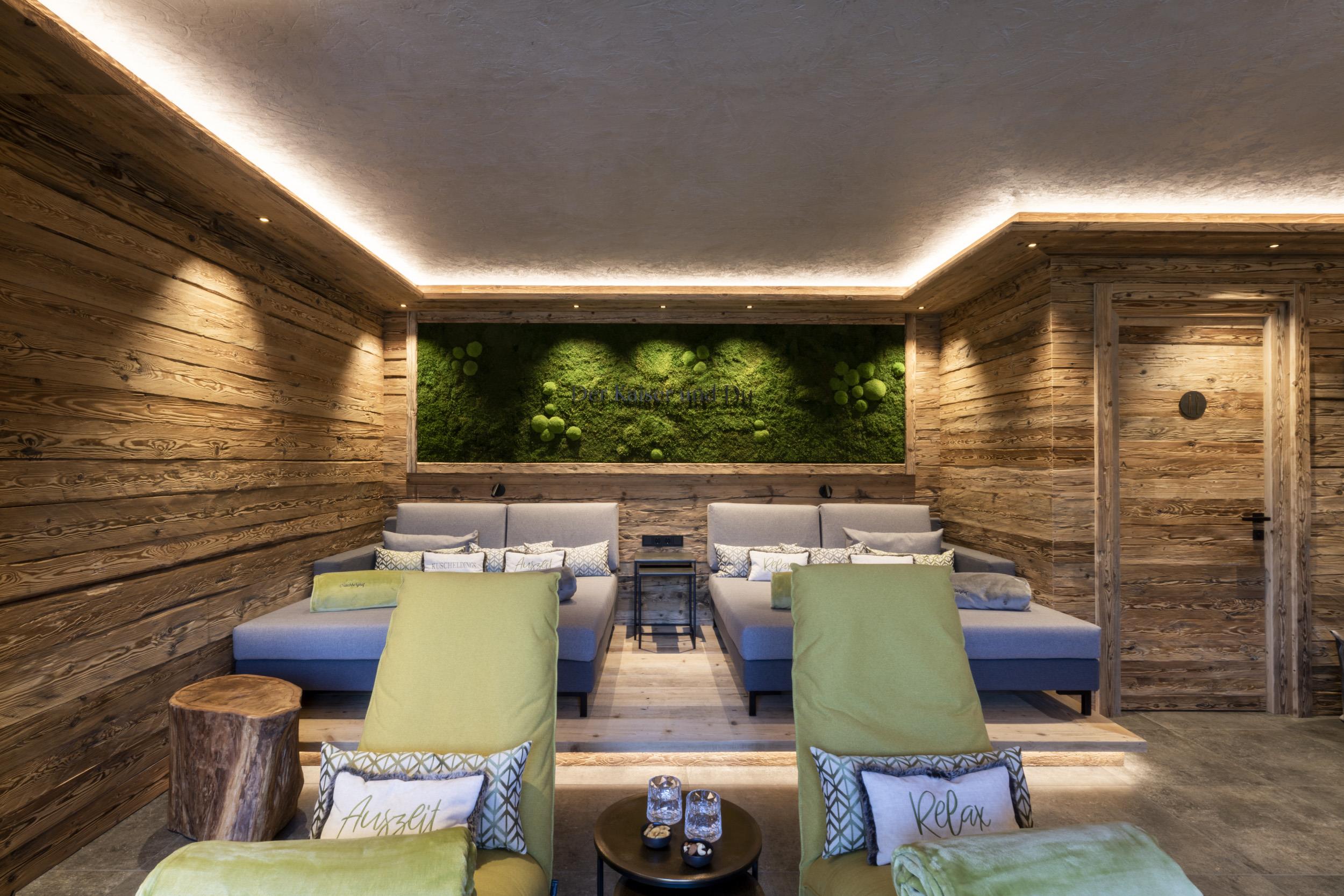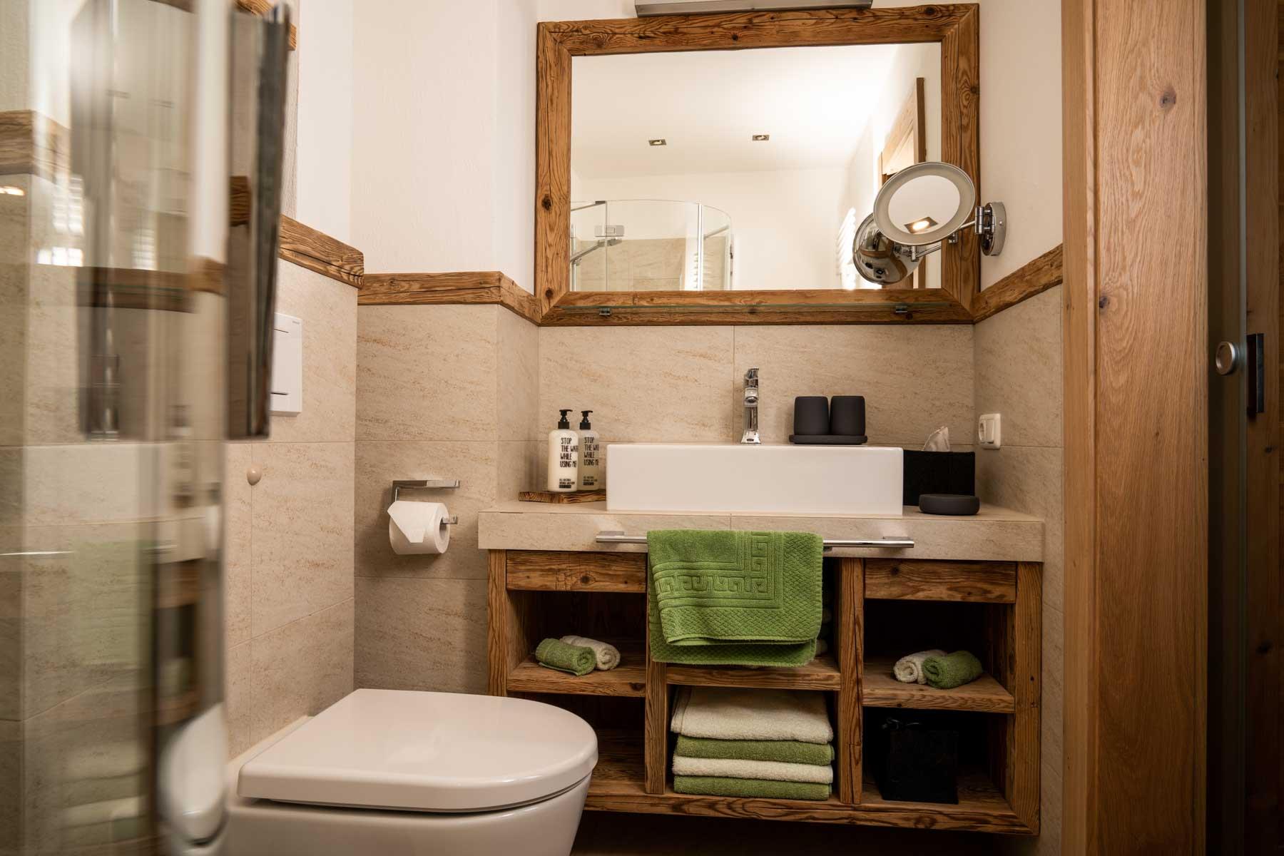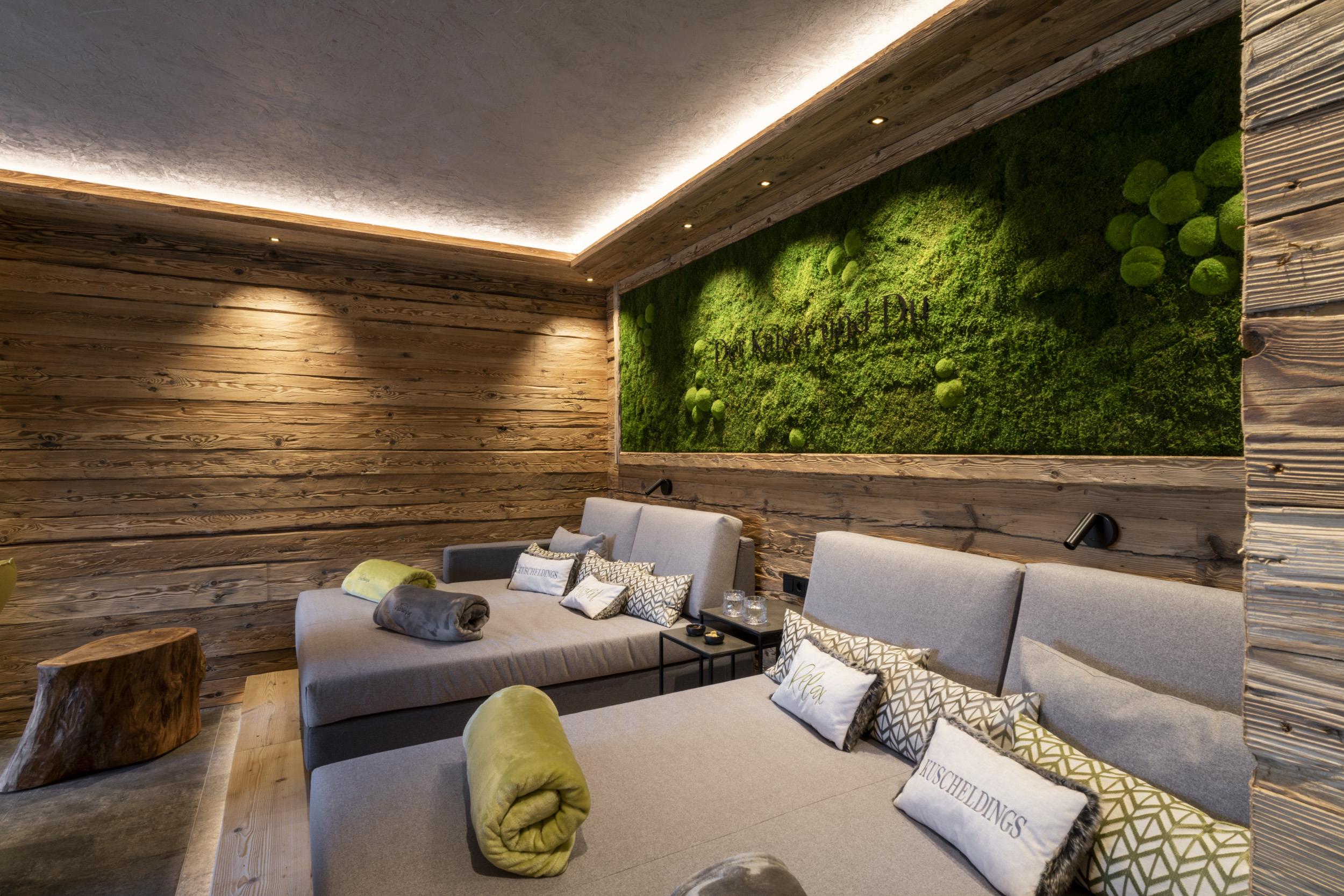 Die Einrichtung ist sehr gemütlich und luxuriös. Naturholz sowie Altholz sorgen für ein entsprechendes Ambiente. Zirbenholz in den Schlafzimmern für einen gesunden Schlaf sowie massive Holzböden mit Fußbodenheizung und in zwei Appartements ein offener Kamin sorgen für eine wohlige Wärme und runden das Wohlbefinden ab. Einem gesunden und behaglichen Raumklima und somit einem erholsamen Urlaub steht nichts mehr im Wege.