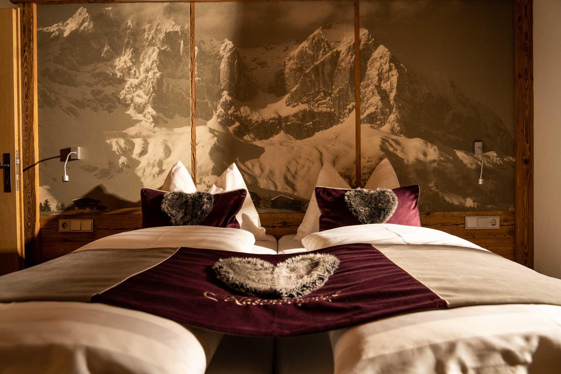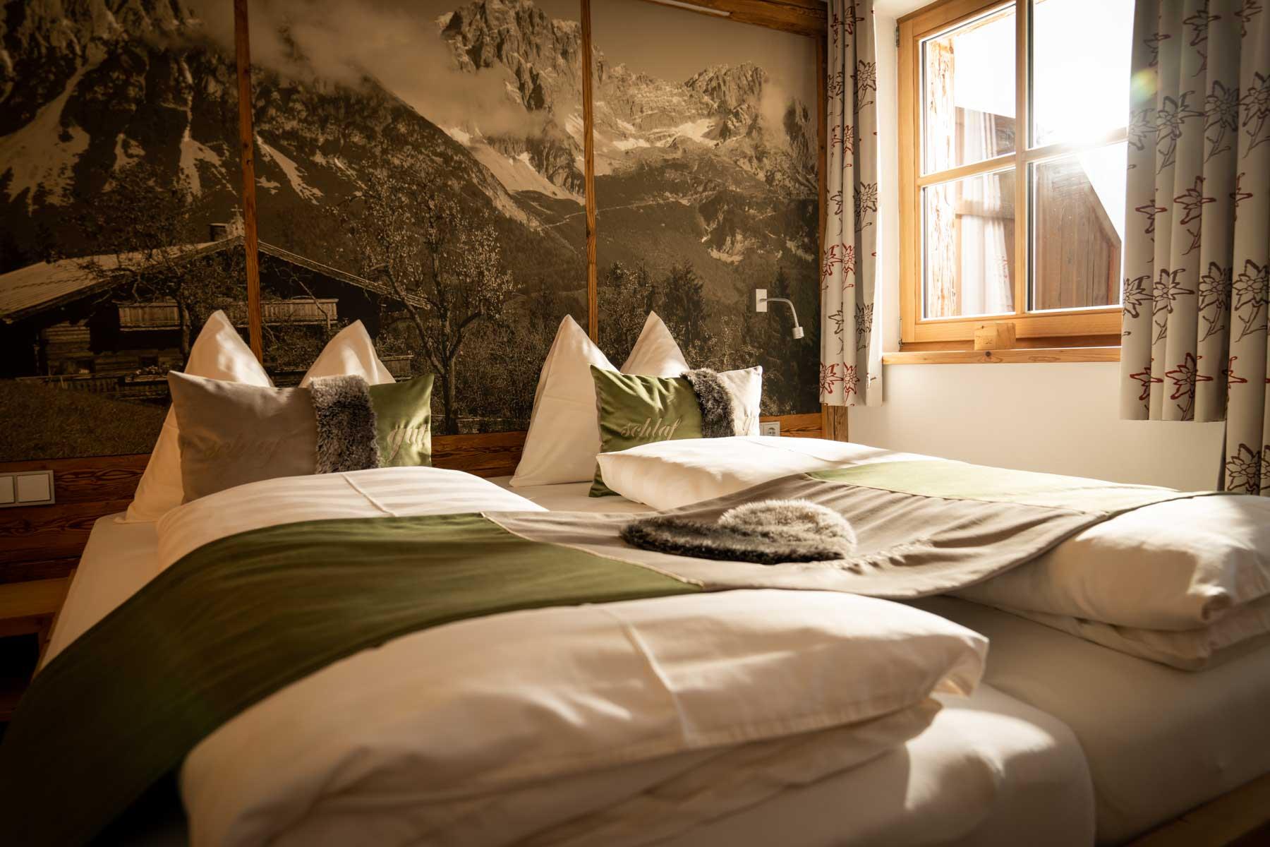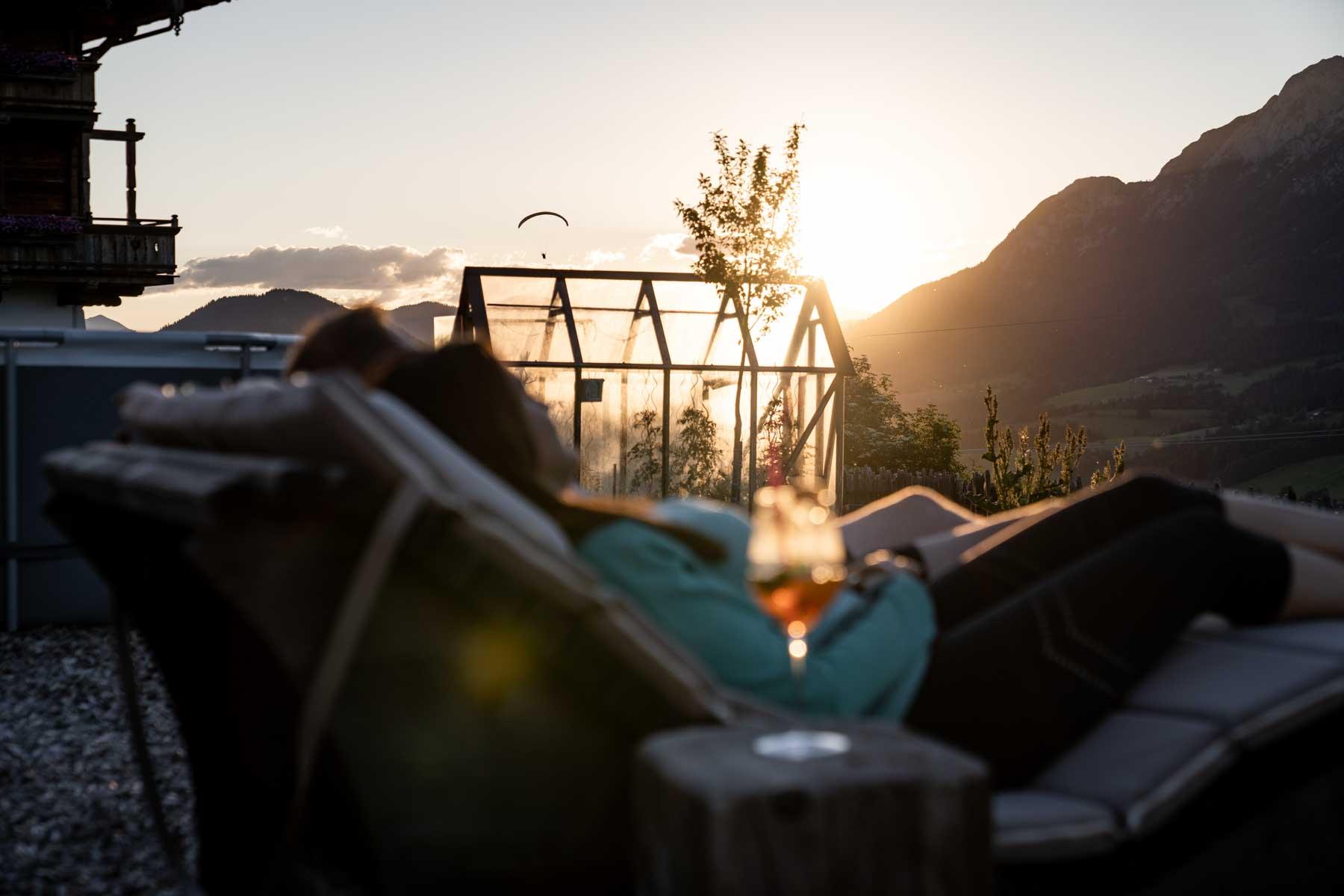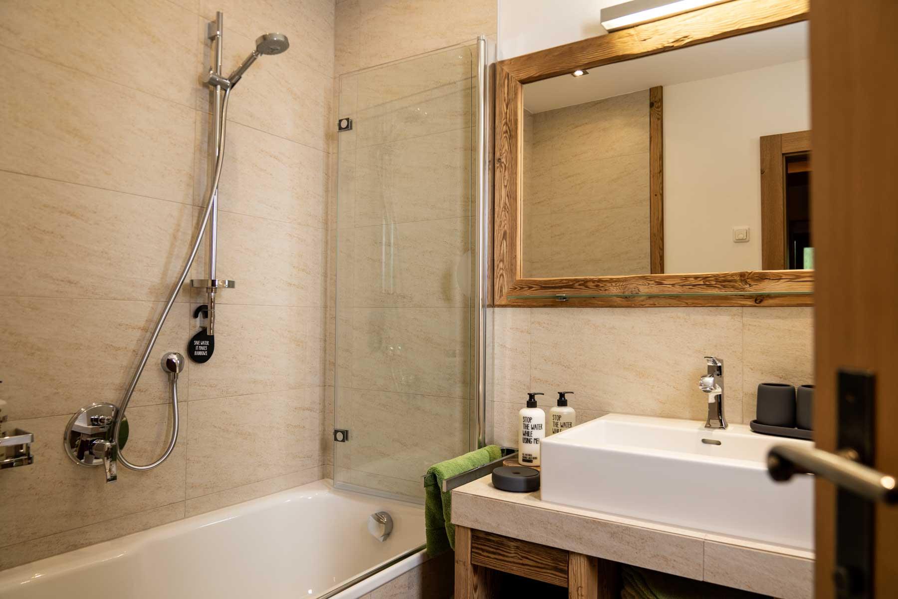 Die Einrichtung ist sehr gemütlich und luxuriös. Naturholz sowie Altholz sorgen für ein entsprechendes Ambiente. Zirbenholz in den Schlafzimmern für einen gesunden Schlaf sowie massive Holzböden mit Fußbodenheizung und in zwei Appartements ein offener Kamin sorgen für eine wohlige Wärme und runden das Wohlbefinden ab. Einem gesunden und behaglichen Raumklima und somit einem erholsamen Urlaub steht nichts mehr im Wege.