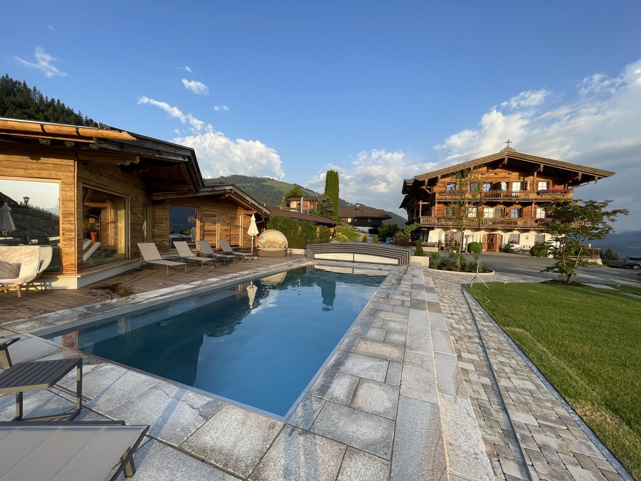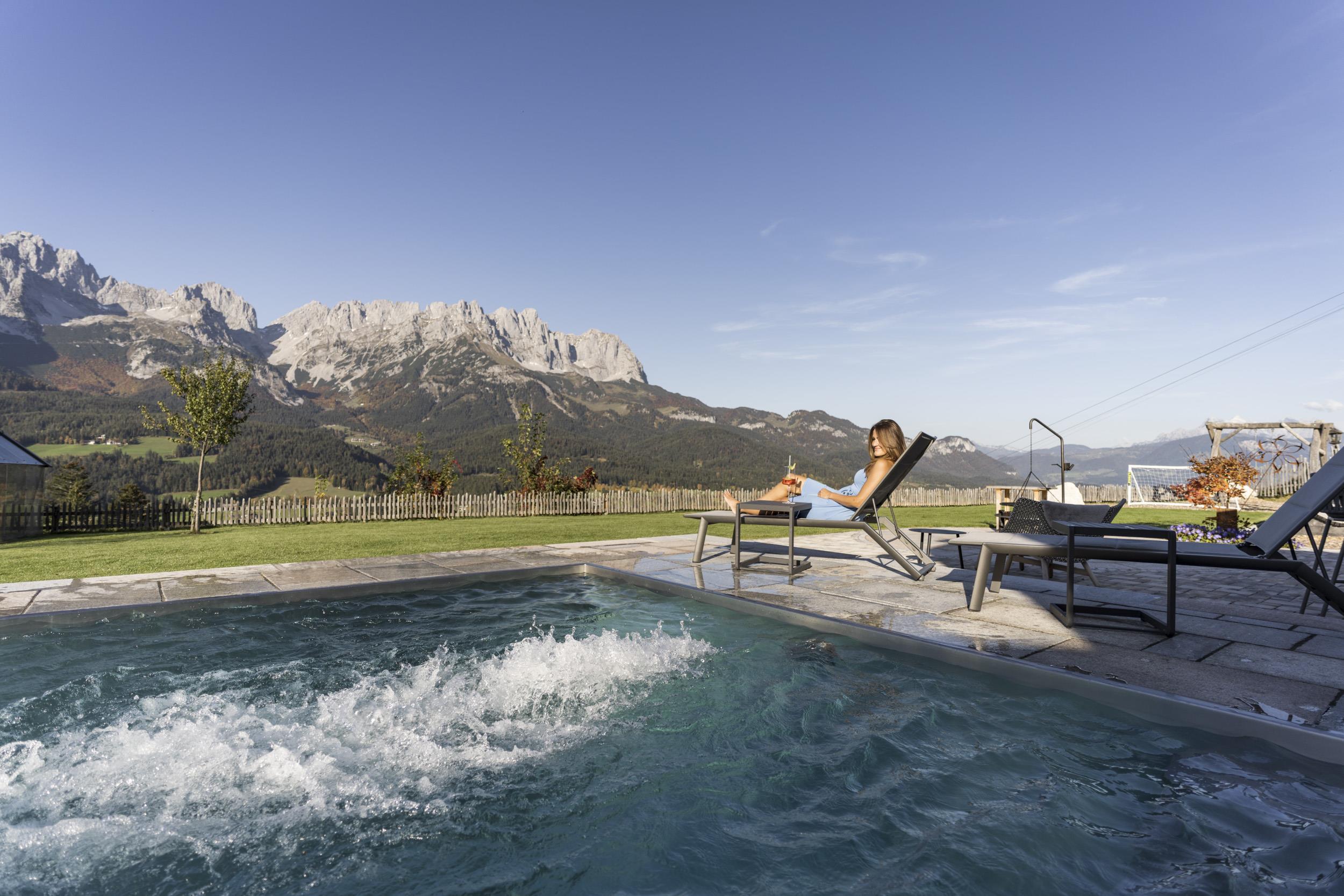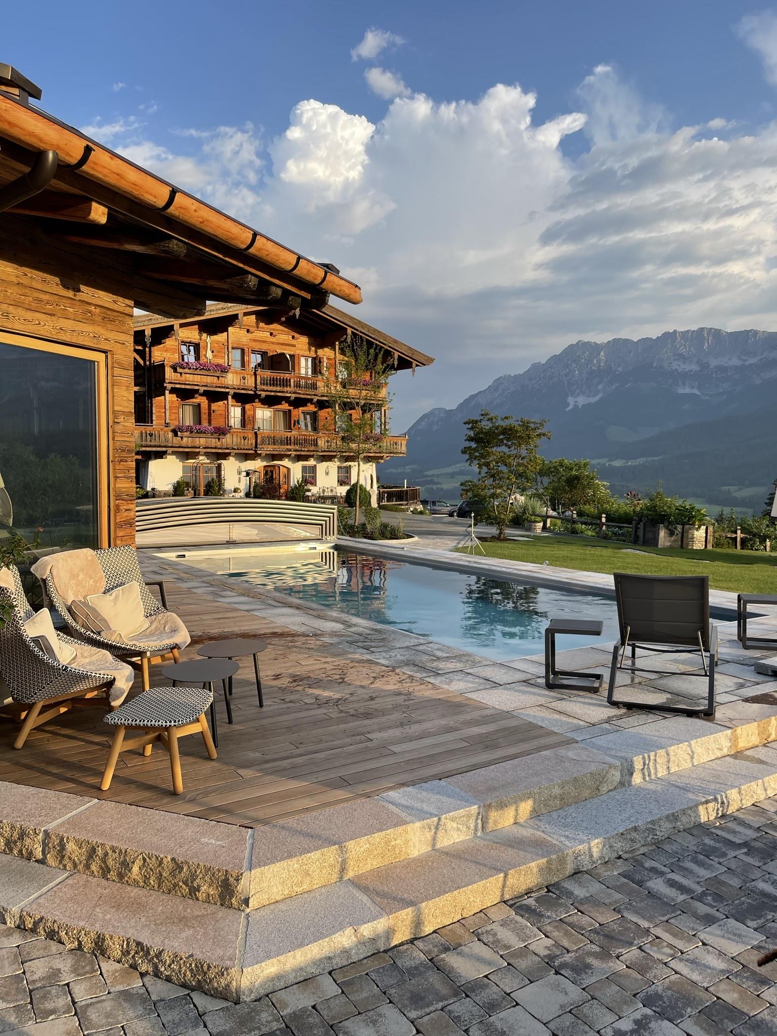 Exklusives Appartement (98 m²) für 2 - 8 Personen im Tiroler Stil mit hochwertiger Ausstattung. Das Appartement verfügt über 1 Vorraum, 3 Schlafzimmer, 2 moderne Bäder mit Dusche/WC und Badewanne/WC, 1 großer Wohnraum mit Küche, gemütlicher Sitzecke und Sofa sowie einem traumhaften offenen Kamin, Flat-TV, Safe und W-LAN (kostenlos). Die Küche ist in gehobener Austattung und komplett eingerichtet. Im Wohnbereich sind massive Holzböden und die Schlafzimmer sind aus Zirbenholz für einen gesunden Schlaf. In der gesamten Wohnung ist Fußbodenheizung. Das Appartement hat zwei wunderschöne Balkone und ist südlich ausgerichtet und bietet einen herrlichen Blick zum Hartkaiser sowie auf die Loferer Steinberge und die umliegende Bergwelt. Stellplatz im Carport sowie Parkplatz. Kinderermäßigung auf Anfrage.