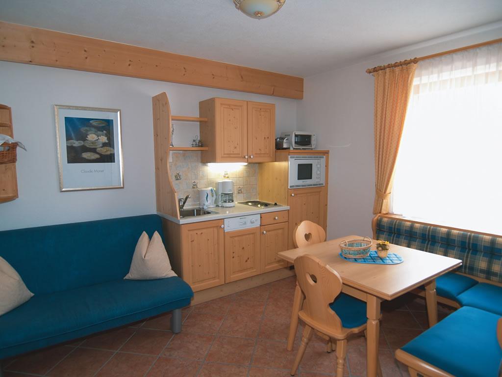 Das voll eingerichte Appartement 3 Brennerspitz verfügt über eine schöne gemütliche Wohnküche mit Geschirrspüler, Mirkowelle, Herd, kleines Backrohr, Handstaubsauger, Kaffeemaschine, Wasserkocher, Schlafzimmer, gemütliches Sofa, Sat-TV mit Radiokanälen, Safe, DU/WC mit Fön, Terrasse.