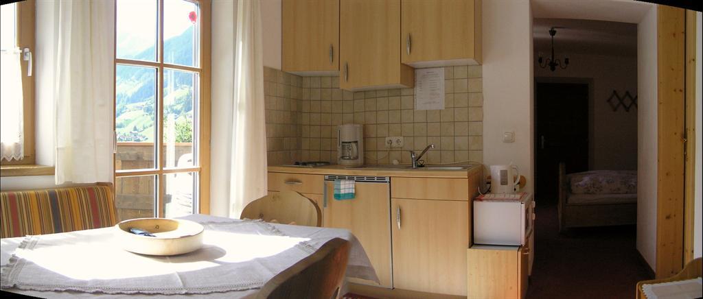 2-Zimmer-Wohnung mit Bad und WC, Wohn- und Schlafbereich trennbar durch Schiebetür, Tiroler Stil, sehr hell und sonnig mit eigener, kleiner südseitigen Terrasse, ideal für 2 Personen, 3 und 4 Personen auch möglich. Endreinigung: € 30,-