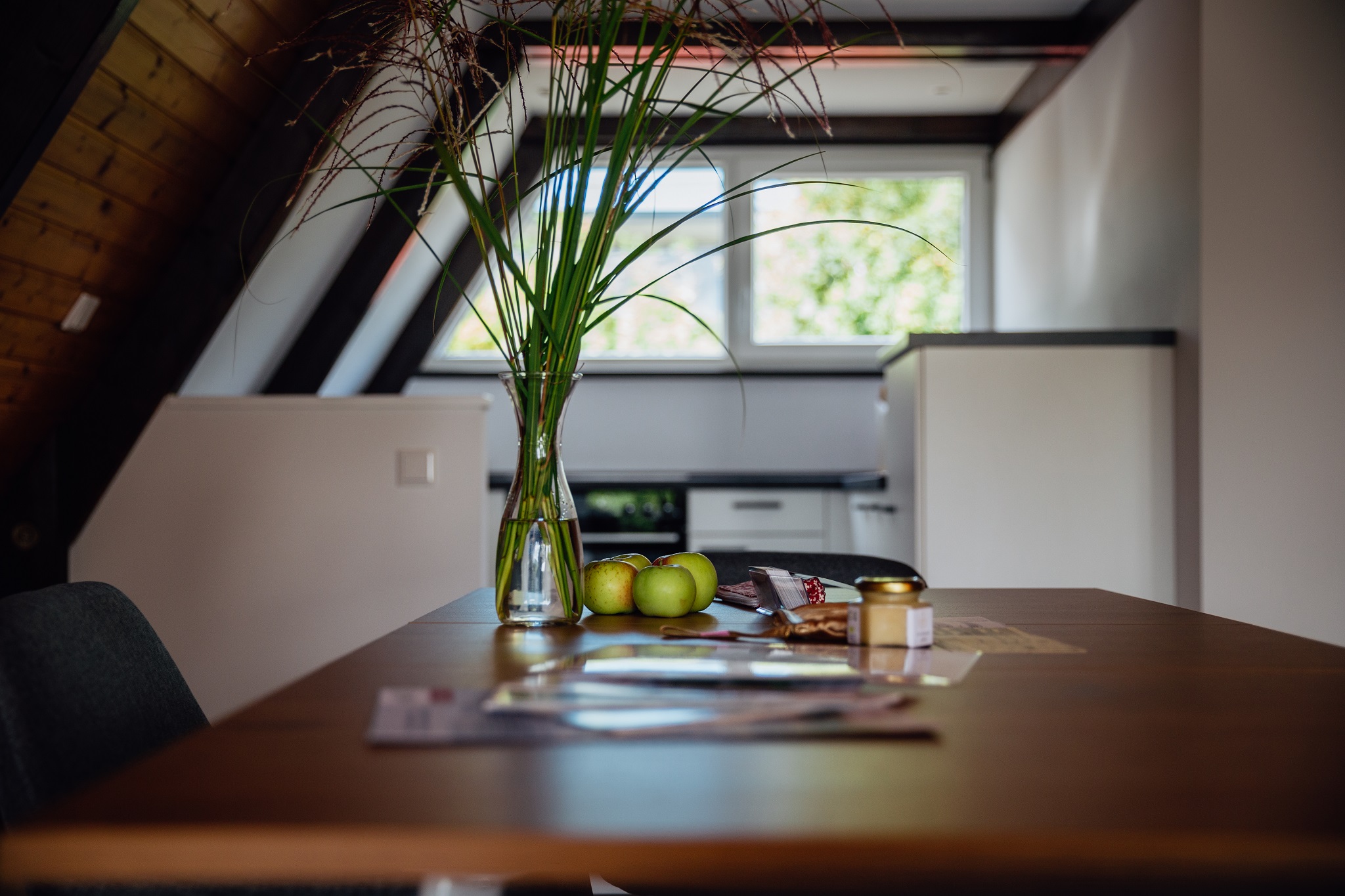 Unser „Himmelhäuschen“ wurde im Sommer 2021 mit viel Liebe zu Detail kernsaniert. Das Ferienhaus besteht aus einem großen und gemütlichen Ess- und Wohnbereich, mit vollausgestatteter Küche. In der Wohnung gibt es zwei Schlafzimmer mit je einem Doppelbett und ein modernes Badezimmer. Die große Terrasse mit Blick auf den Kreuzberg lädt zum Entspannen und Verweilen ein.