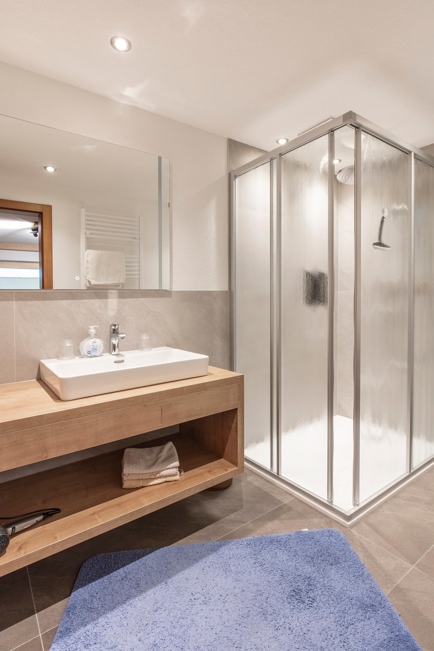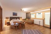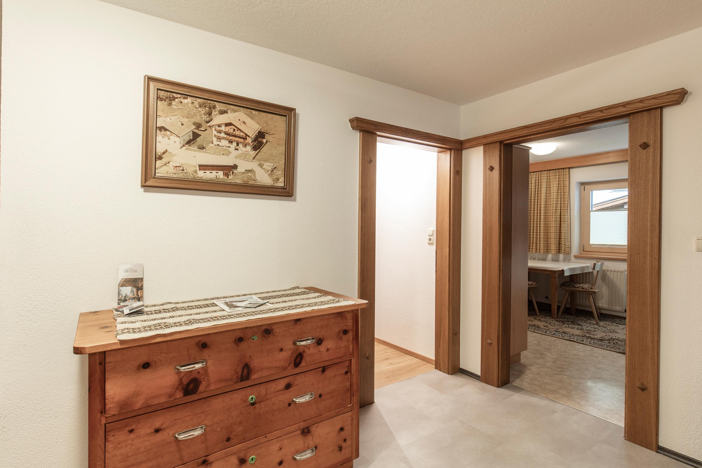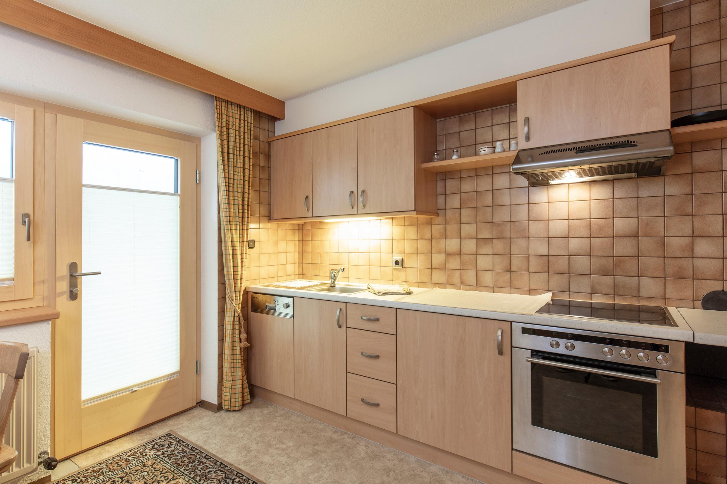 Gemütliches Appartement mit ca. 60 m² im Erdgeschoss: vollausgestattete Küche mit E-Herd und Backofen, Spülmaschine, Kühlschrank, Kaffeemaschine uvm.; Wohnzimmer im Tiroler Stil mit Kachelofen; Vorraum; 2 Schlafzimmer mit Doppelbett, Zusatzbett in einem Zimmer; 2 Badezimmer mit Dusche/WC.