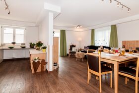Unsere Ferienwohnung Hirschberg ist mit einer Größe von 93qm die größte in unserem Haus, liegt auf der Süd-West Seite im 2. OG und verfügt über einen umlaufendenden Balkon.