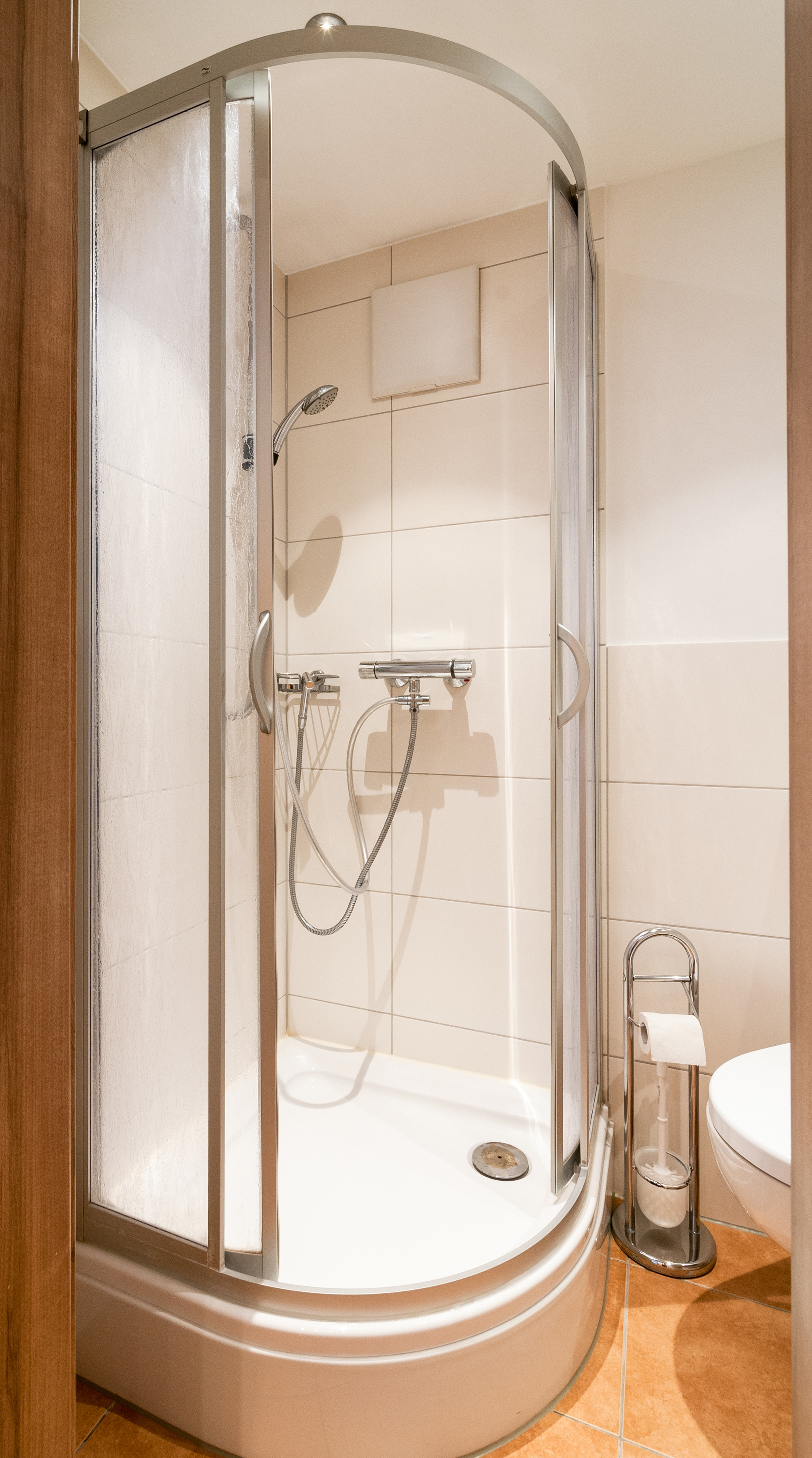 In dem Duschbadezimmer hat die Wohnung eine Waschmaschine, welche mit einem Münzzähler funktioniert. (Kosten pro Waschladung 5€)