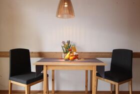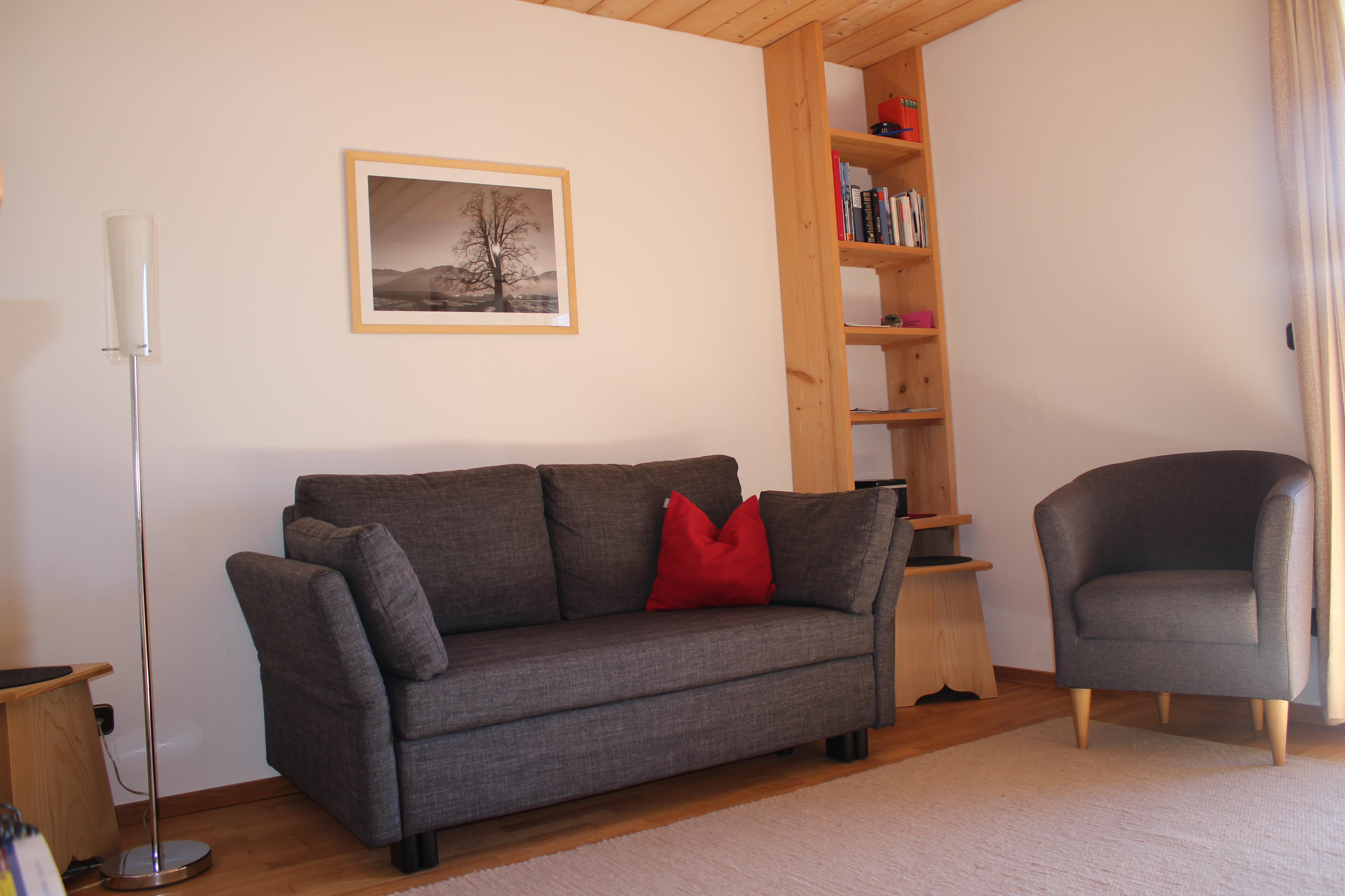 50qm großes Appartement für2 Personen, kl. Küchenzeile, sep. Schlafzimmer mit großem Doppelbett, Essecke, schöner geschützter Balkon im Süden, mit herrl. Ausblick auf Hörndle und Umgebung. Idealer Frühstücksplatz Parkettboden und Massivholzmöbel