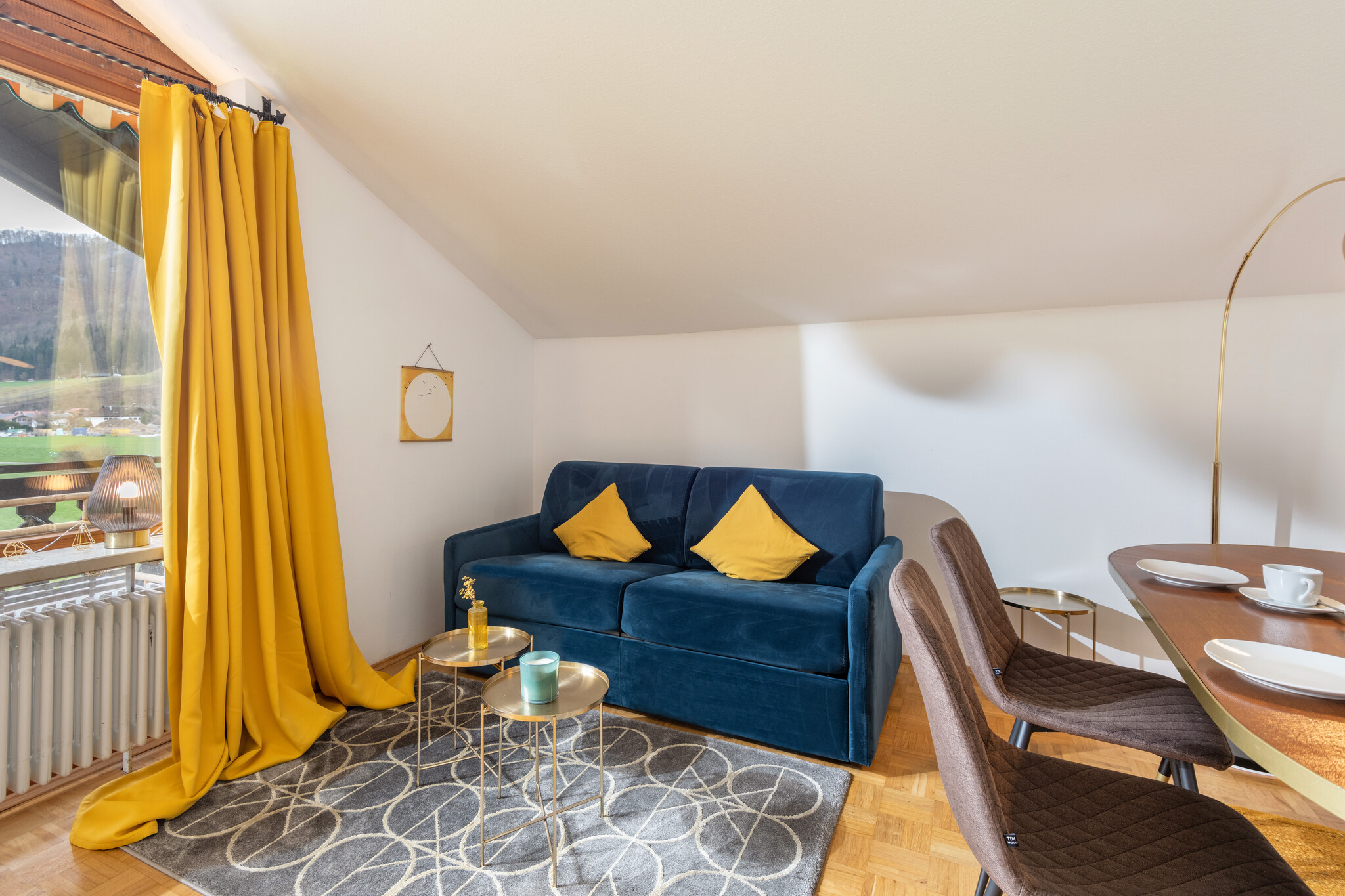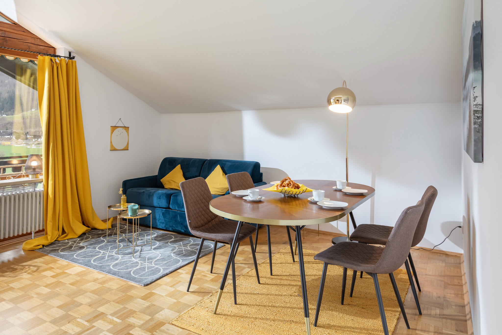 Die Ferienwohnung Panoramablick bietet Ihnen einen traumhaften Ausblick auf das Kaisergebirge sowie auf das Ortszentrum von Oberaudorf. Die 60 qm große Wohnung bietet eine hervorragend ausgestatte Küche mit Geschirrspüler, ein großzügiges Schlafzimmer mit Dachfenster, ein neu renoviertes Badezimmer mit Dusche sowie ein gemütliches Wohnzimmer mit Essecke. In der Wohnung ist kostenloses Wlan verfügbar, sowie eine Waschmaschine und ein Trockner.