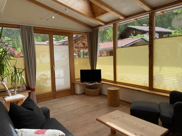 Im Erdgeschoss gelegene Wohnung mit Wohnküche inklusive Wintergarten mit Schlafsofa, Schlafzimmer mit Doppelbett, Tages-WC und Badezimmer mit Dusche. Im Keller befindet sich zudem eine kleine Waschküche.