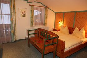 Helles, gemütliches, geräumiges Zimmer mit Holzvertäfelung und herrlichem Ausblick, mit Südbalkon.