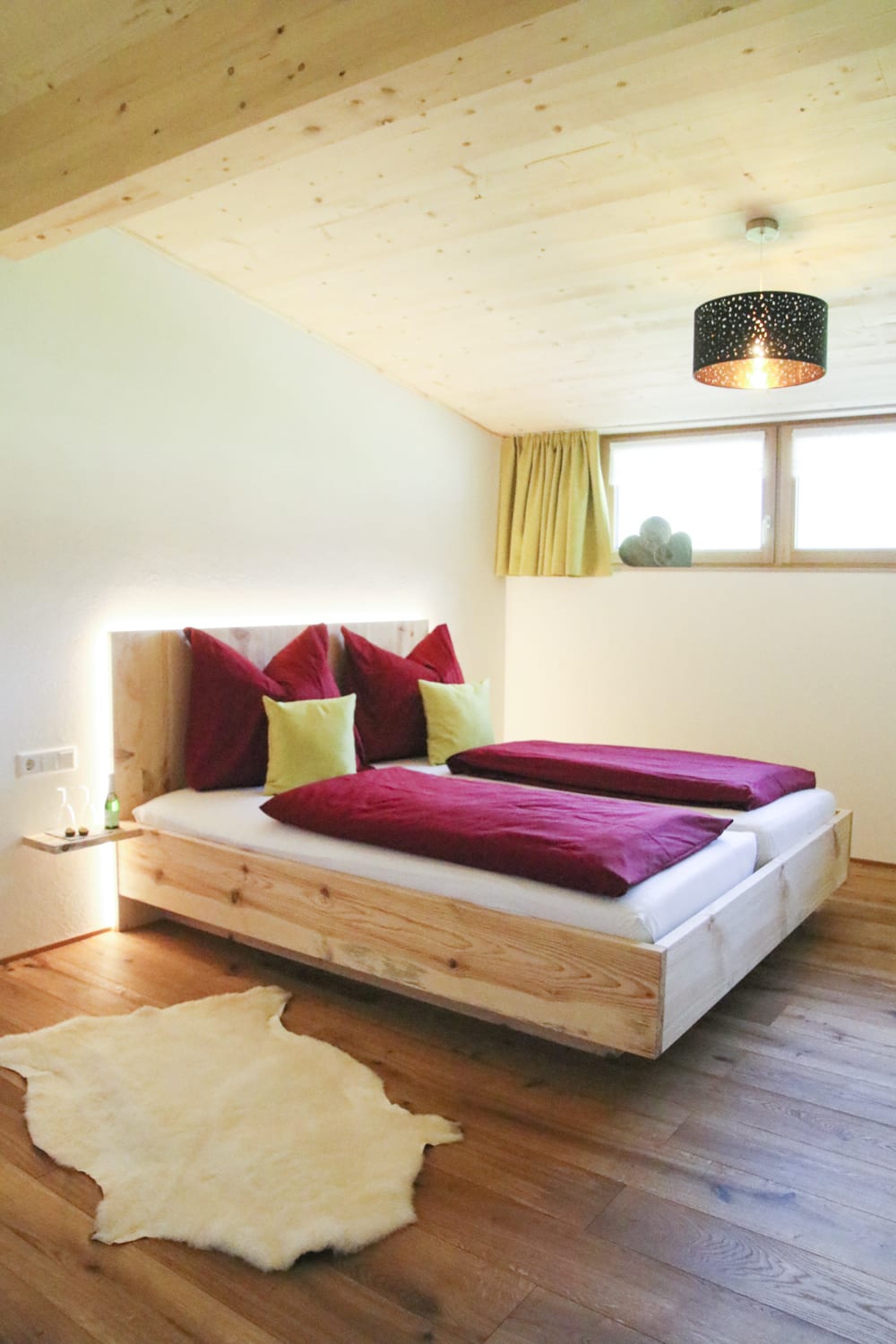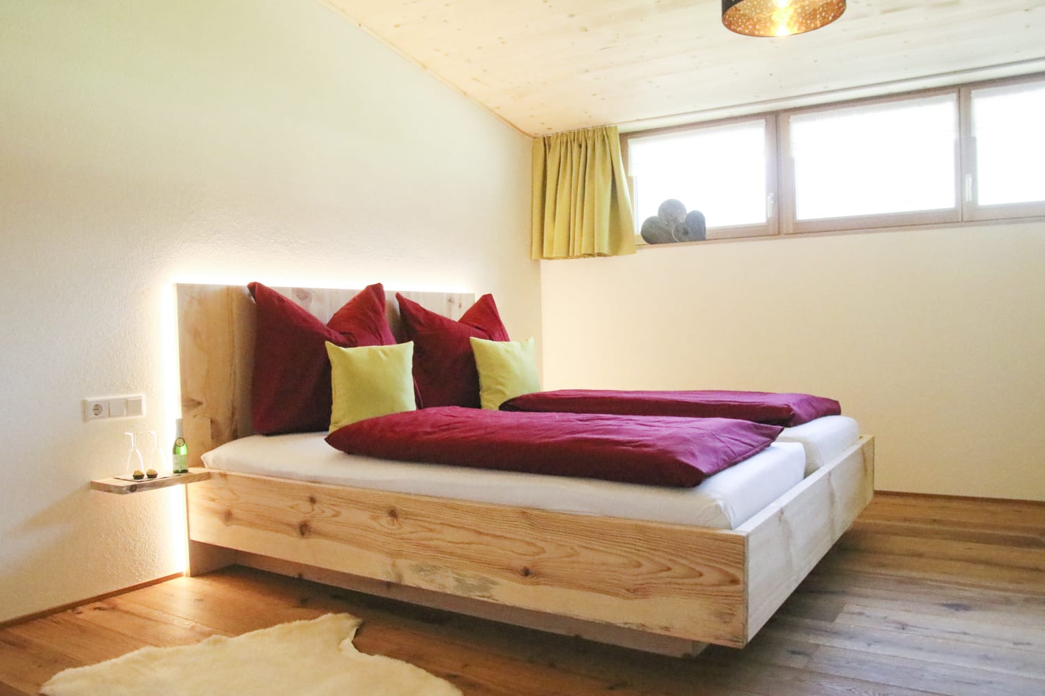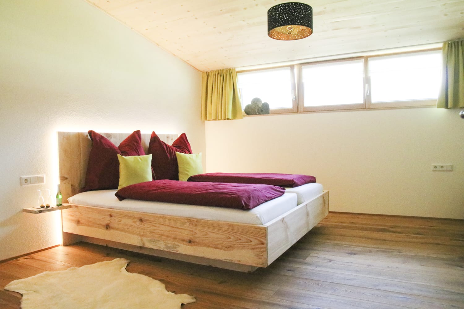 Neues, allergikerfreundliches Apartment mit Bergblick zur Kanisfluh. Voll ausgestattete Wohnküche mit Balkon und Outdoor-Sofa im Dachgeschoss. 2 separate Schlafzimmern mit Vollholzbetten inkl. Bettdecken mit Überlänge. Badezimmer mit begehbarer Dusche und exklusivem Doppel-Holzwaschbecken und separatem WC. Selbstverständlich stellen wir Ihnen Bettwäsche und Handtücher zur Verfügung.