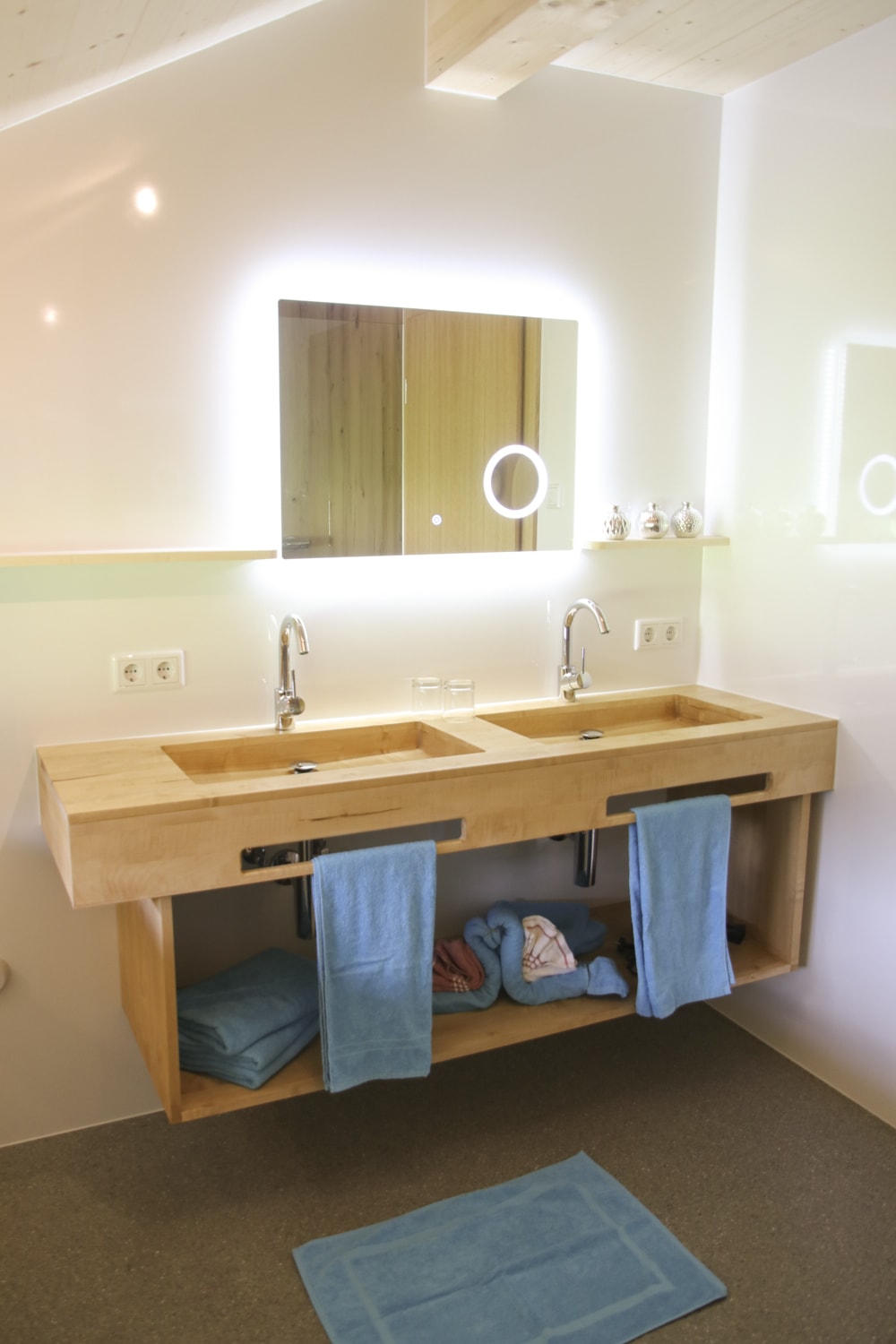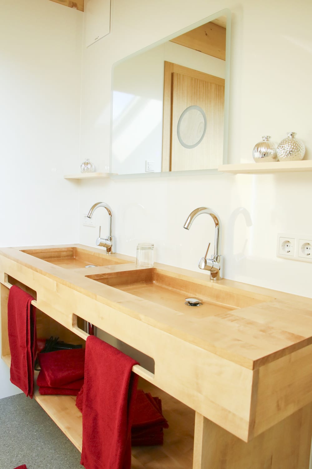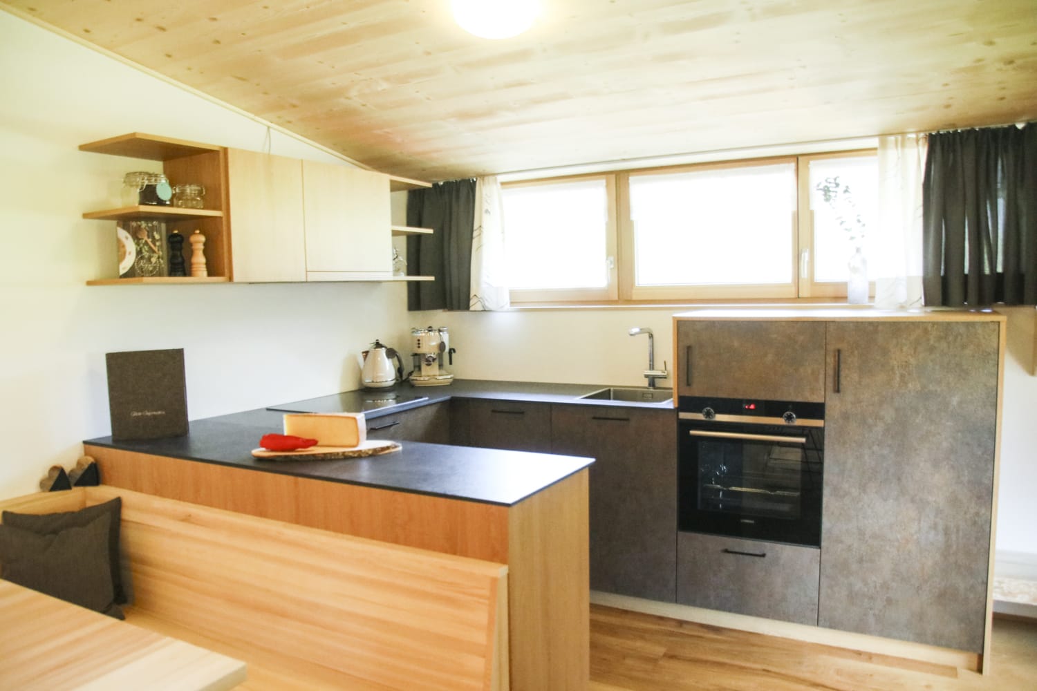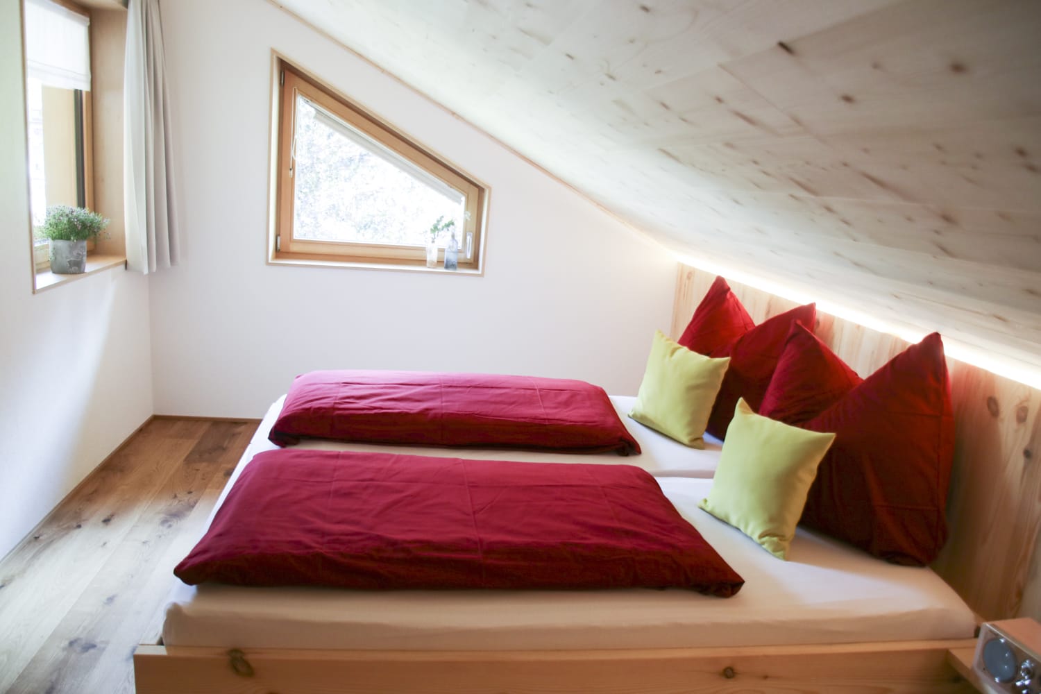 Neues, allergikerfreundliches Apartment mit Bergblick zur Kanisfluh. Voll ausgestattete Wohnküche mit Balkon und Outdoor-Sofa im Dachgeschoss. 2 separate Schlafzimmern mit Vollholzbetten inkl. Bettdecken mit Überlänge. Badezimmer mit begehbarer Dusche und exklusivem Doppel-Holzwaschbecken und separatem WC. Selbstverständlich stellen wir Ihnen Bettwäsche und Handtücher zur Verfügung.