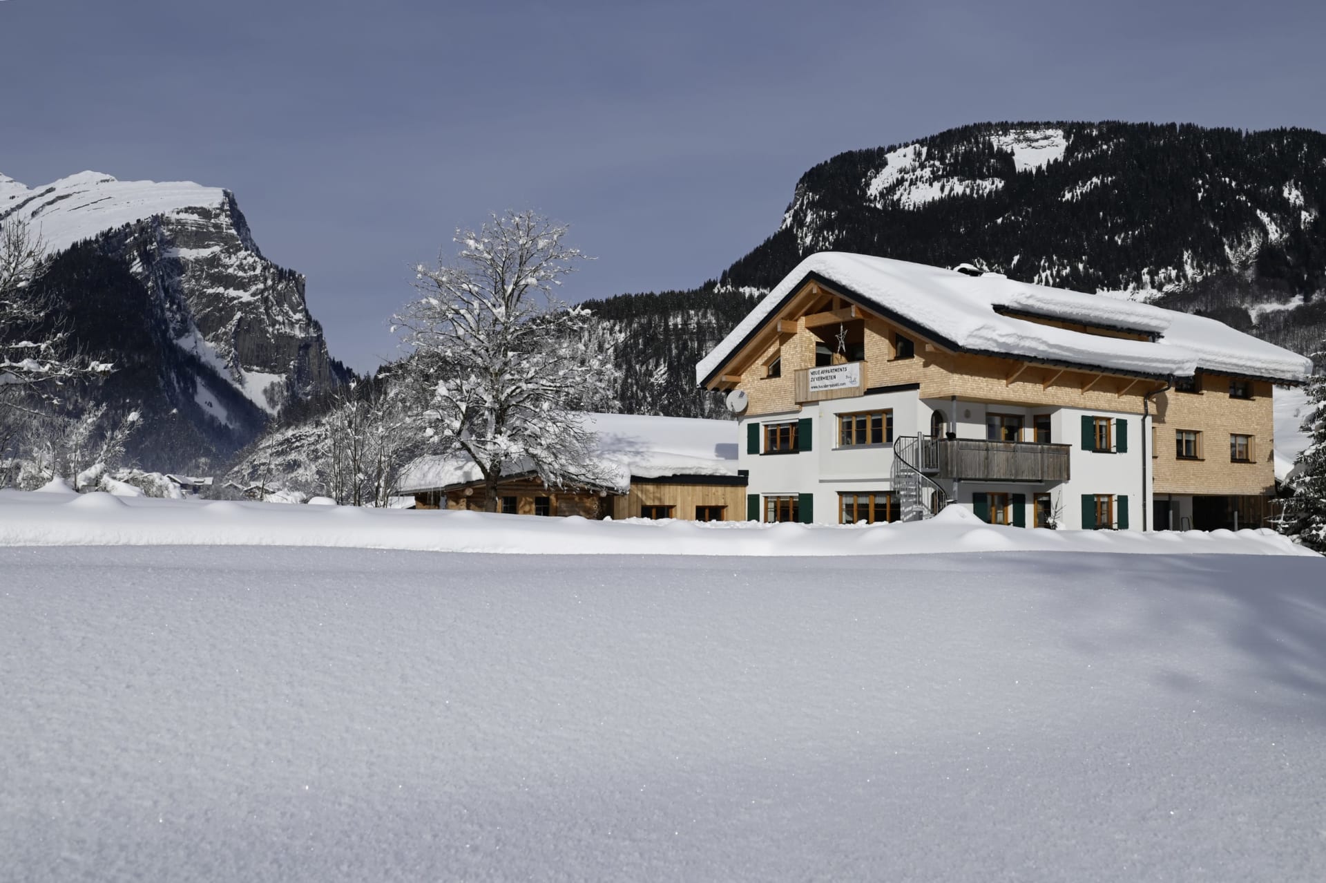 40 Kilometer klassisch gespurte Langlaufloipe und 13 Kilometer Skatingloipe sowie 38 Kilometer gebahnte Winterwanderwege abseits der Straßen direkt vom Haus Bergquell aus durch Flussauen, verschneite Wälder und weite Wiesen. Die Skibushaltestelle ist wenige Gehminuten vom Haus entfernt. Der Skibus bringt Sie in wenigen Minuten kostenfrei in alle umliegenden Skigebiete des Bregenzerwaldes: Grundholzlift in Au mit Nachtskilauf, Diedamskopf, Mellau-Damüls, Warth-Schröcken oder gar Ski Arlberg.