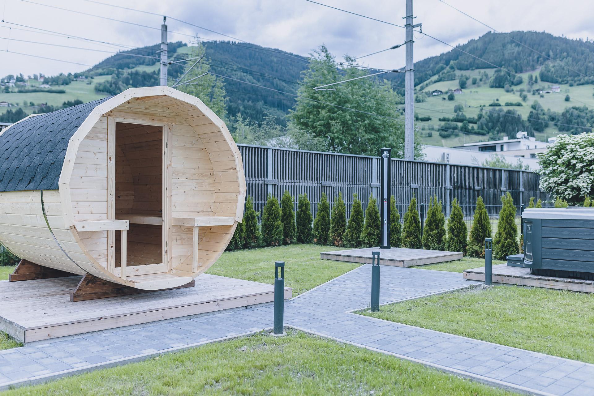 Im Garten befindet sich eine Außensauna die für beide Einheiten zugänglich ist und ab April/Mai 2022 wird unseren Gästen zusätzlich zur Sauna auch ein Whirlpool bzw. Hot Tub zur Verfügung stehen.