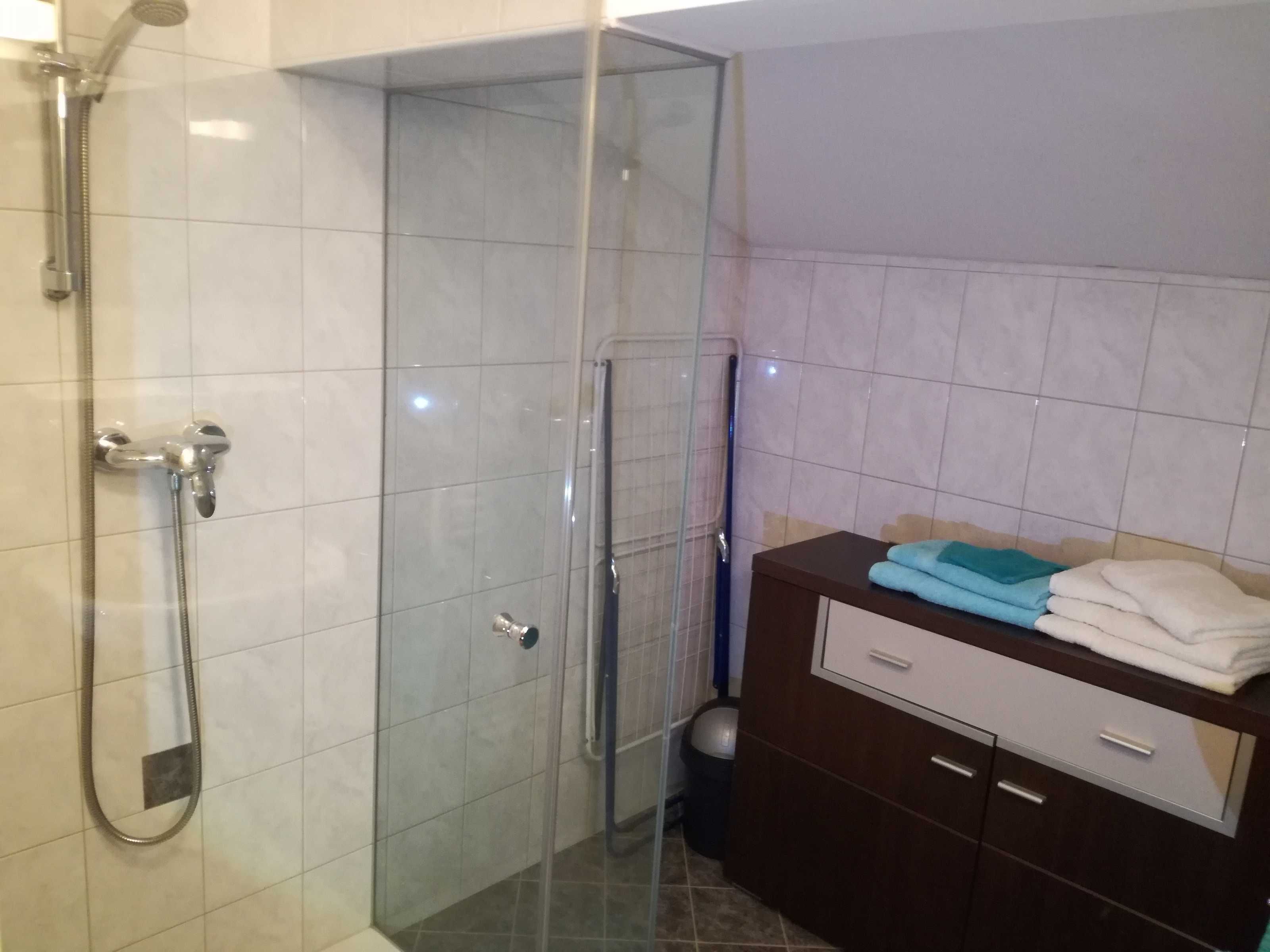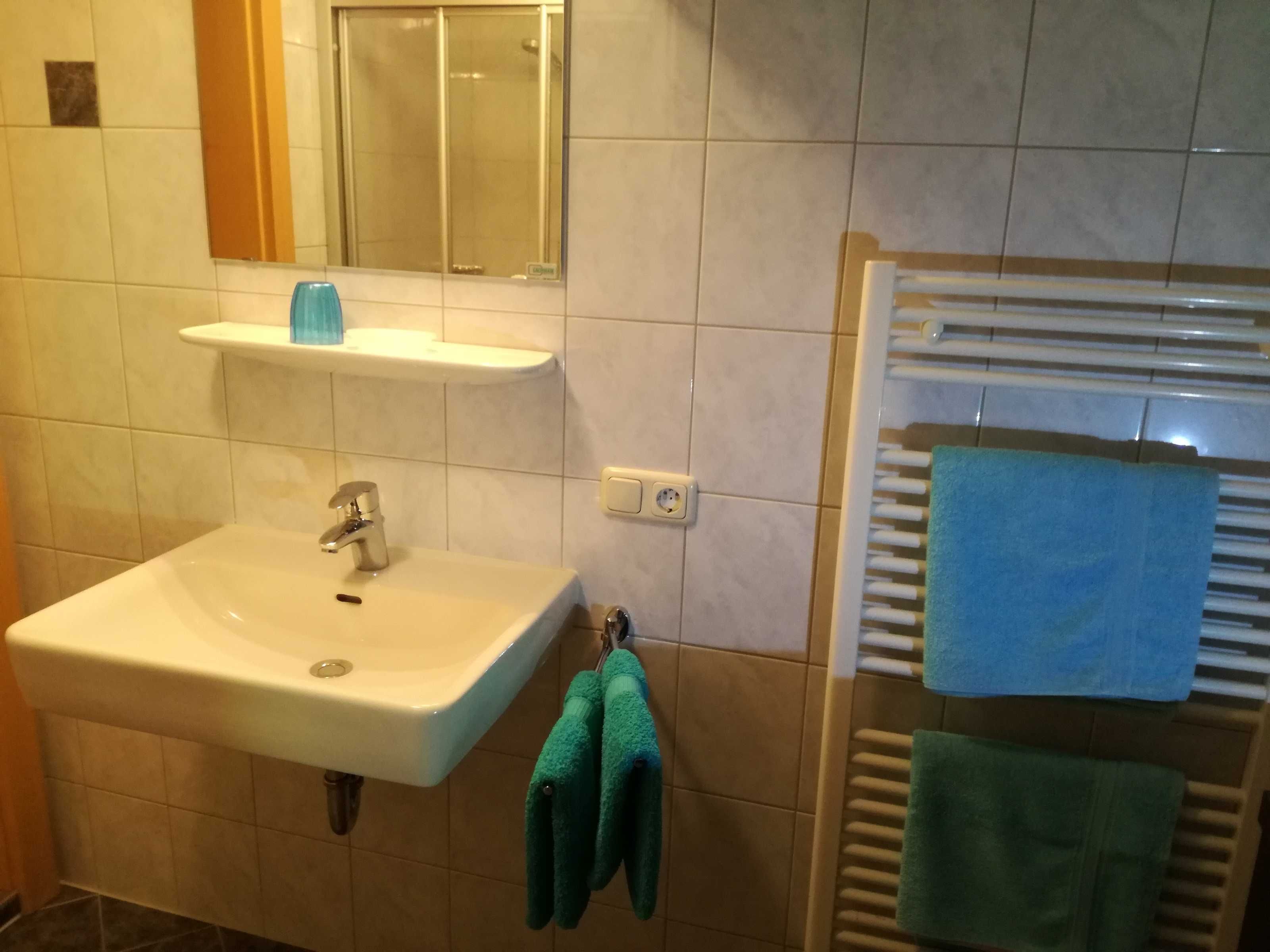 -- Bad/WC getrennt mit Waschgelegenheit im WC, Handtücher, Duschtücher,