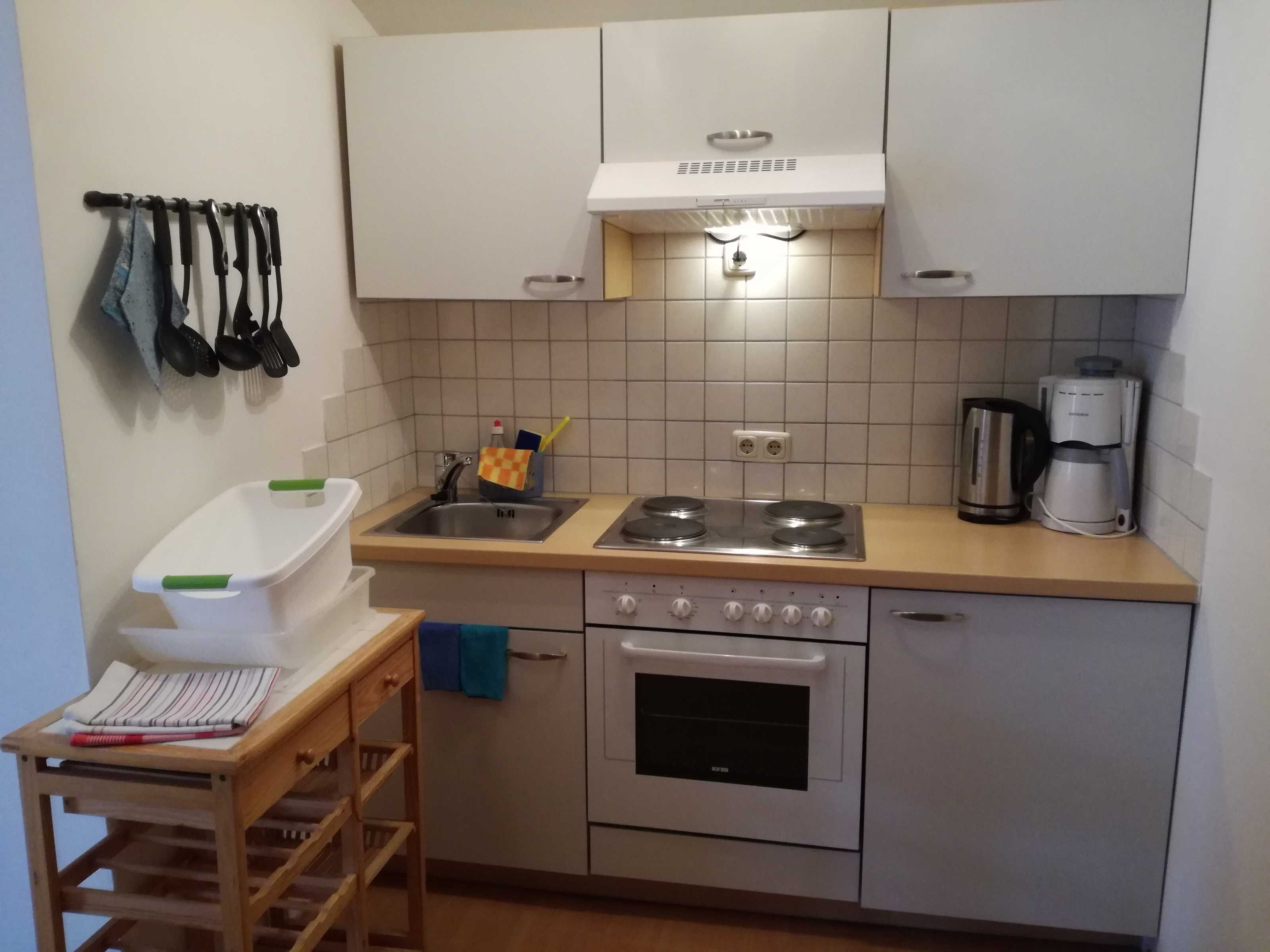 -- Kochnische: E-Herd mit Backrohr, Kühlschrank mit Gefrierfach, Abwasch,