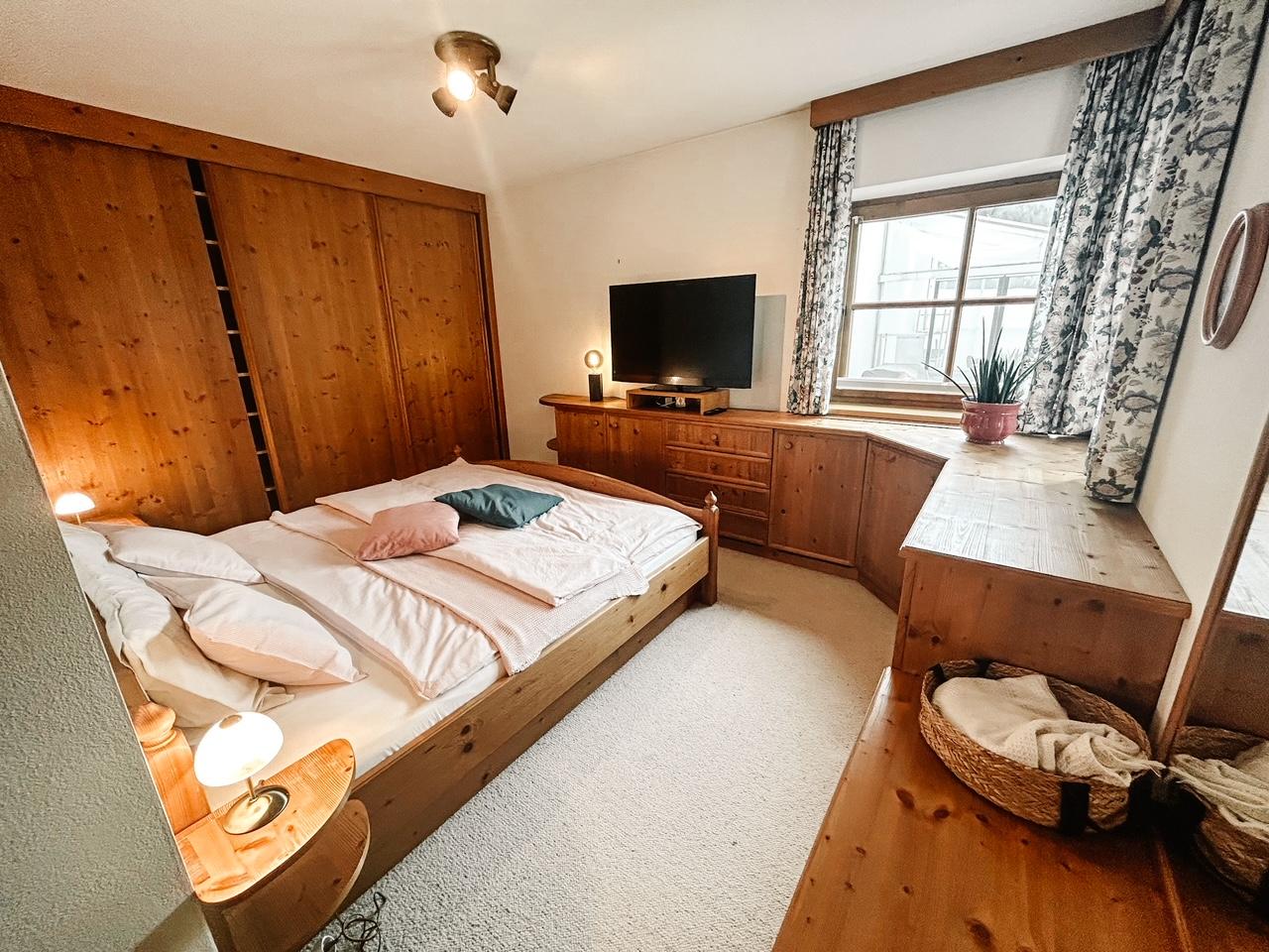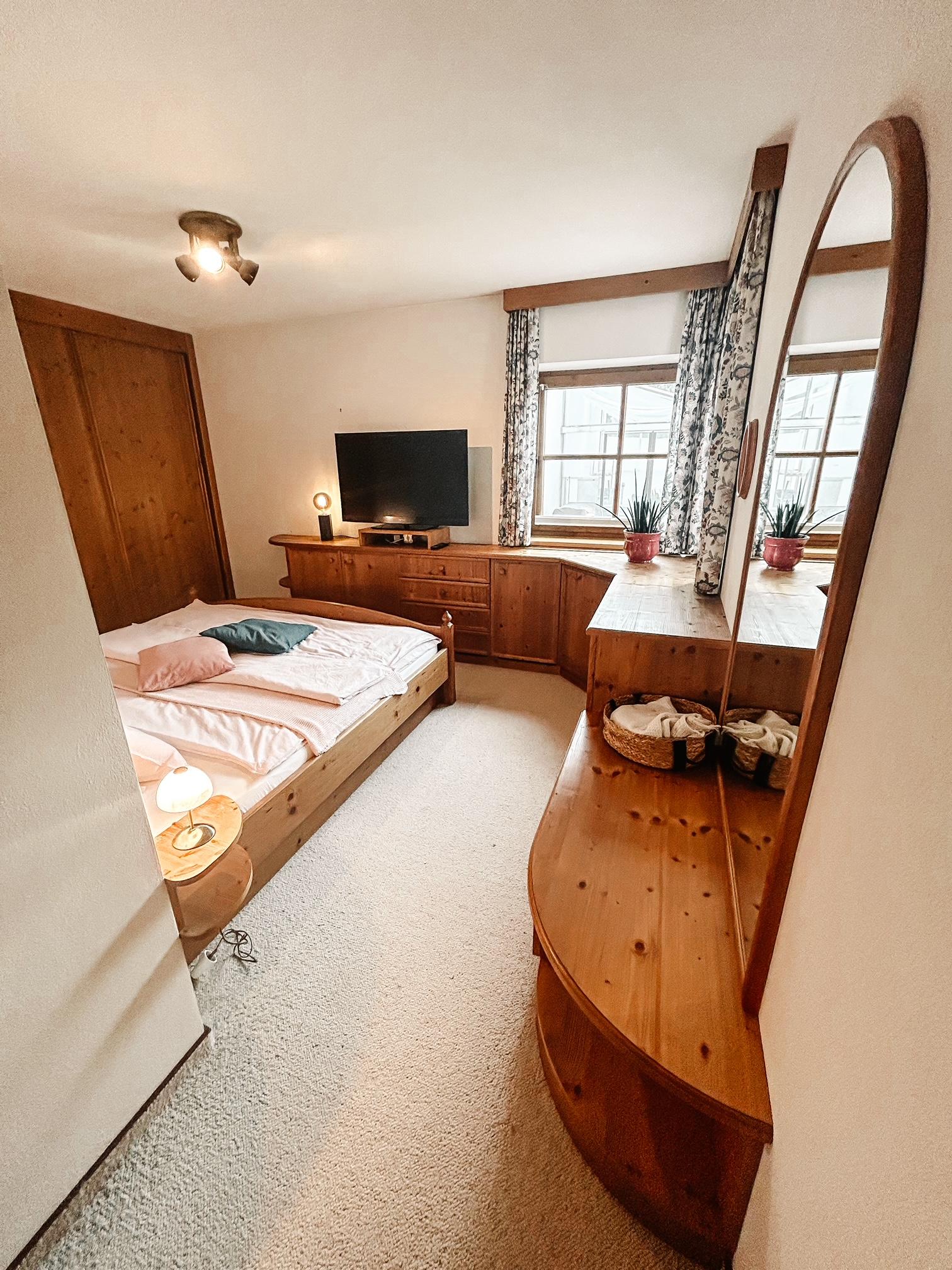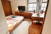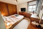 • großes Schlafzimmer mit Doppelbett und Smart TV