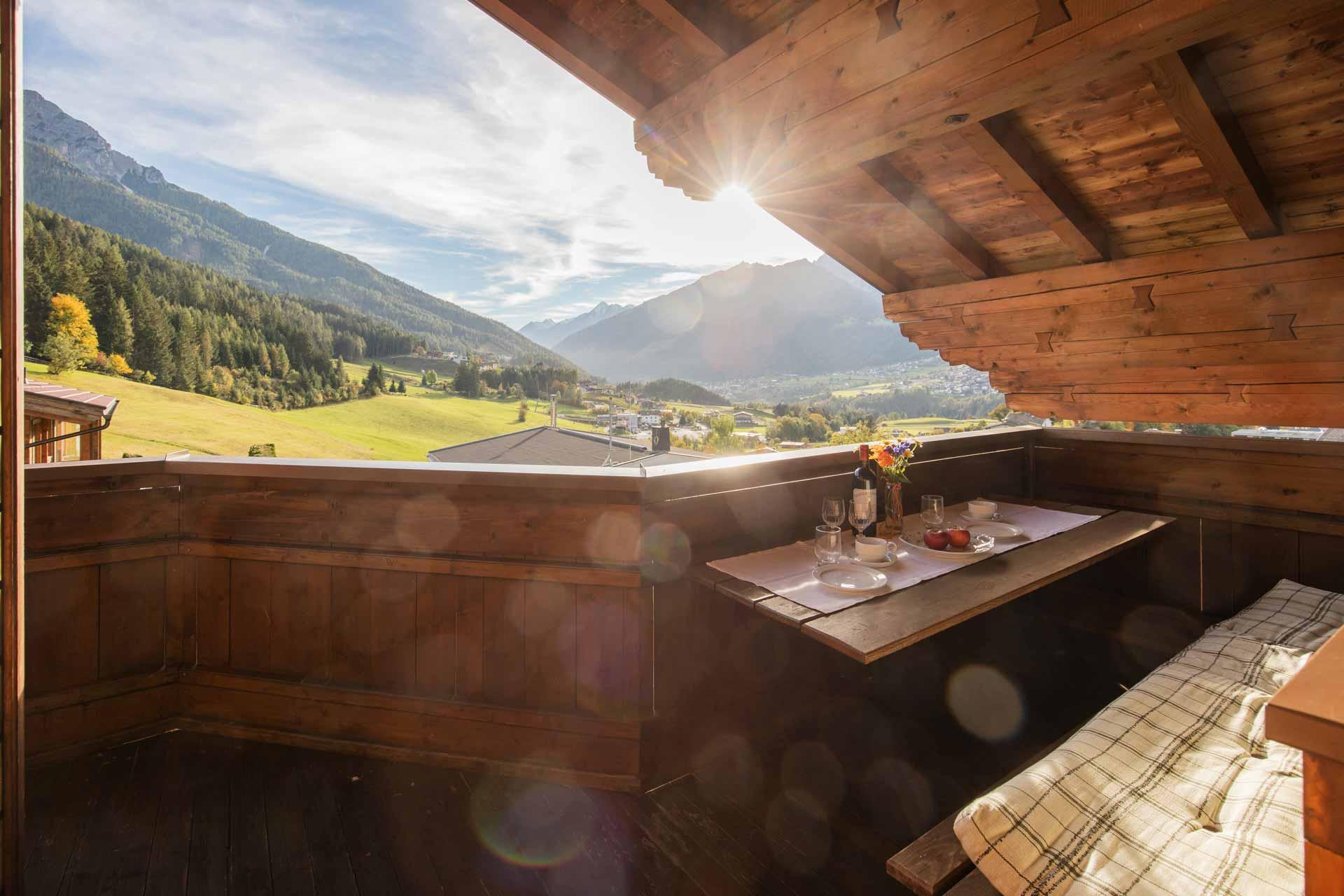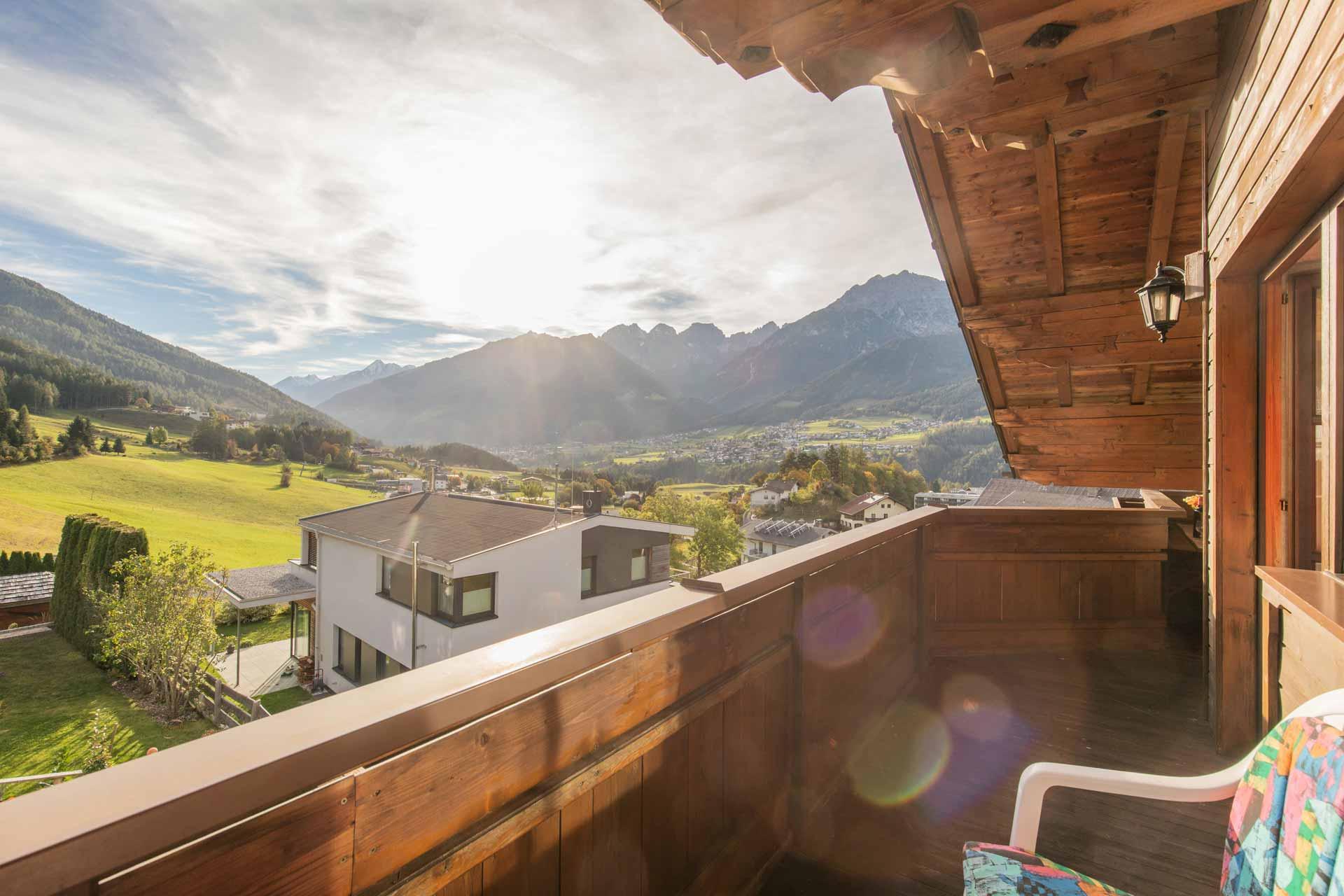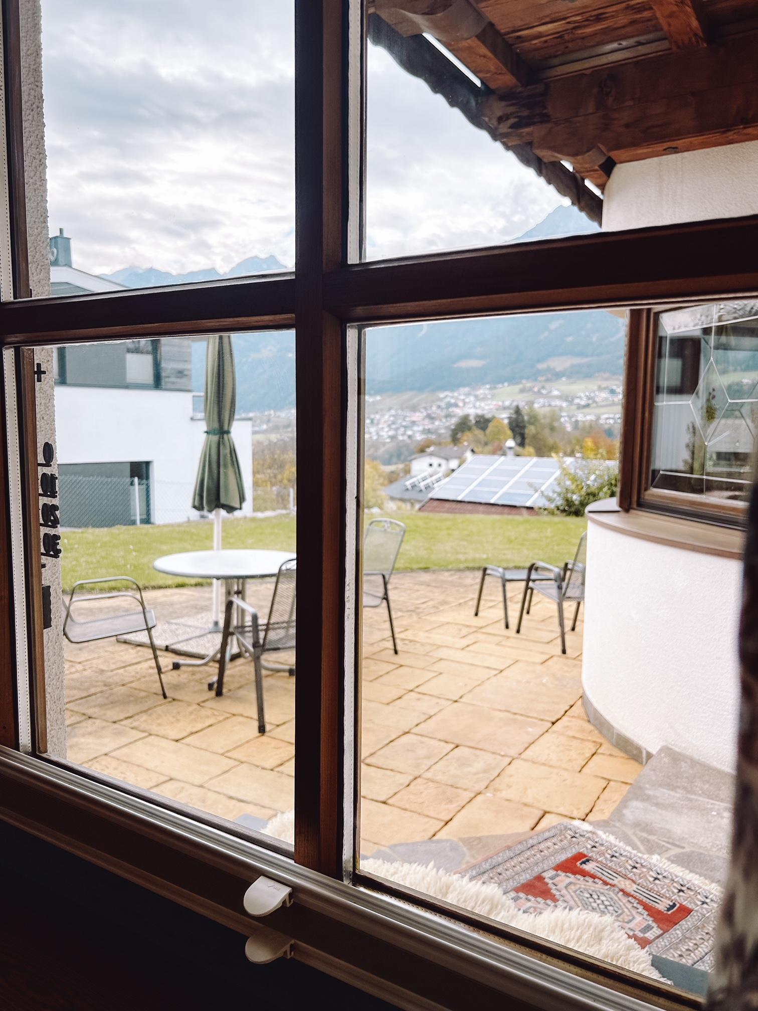 • Zugang zur der privaten Sonnenterrasse mit einzigartigem Ausblick auf die umliegende Bergwelt (Serles, Kalkkögel)